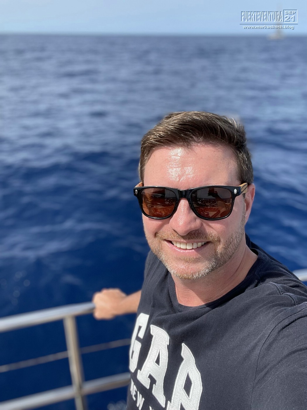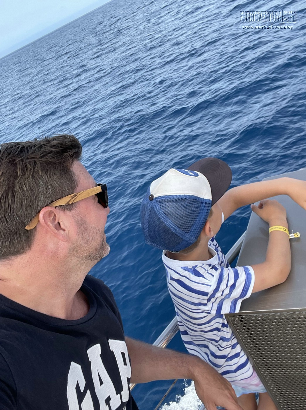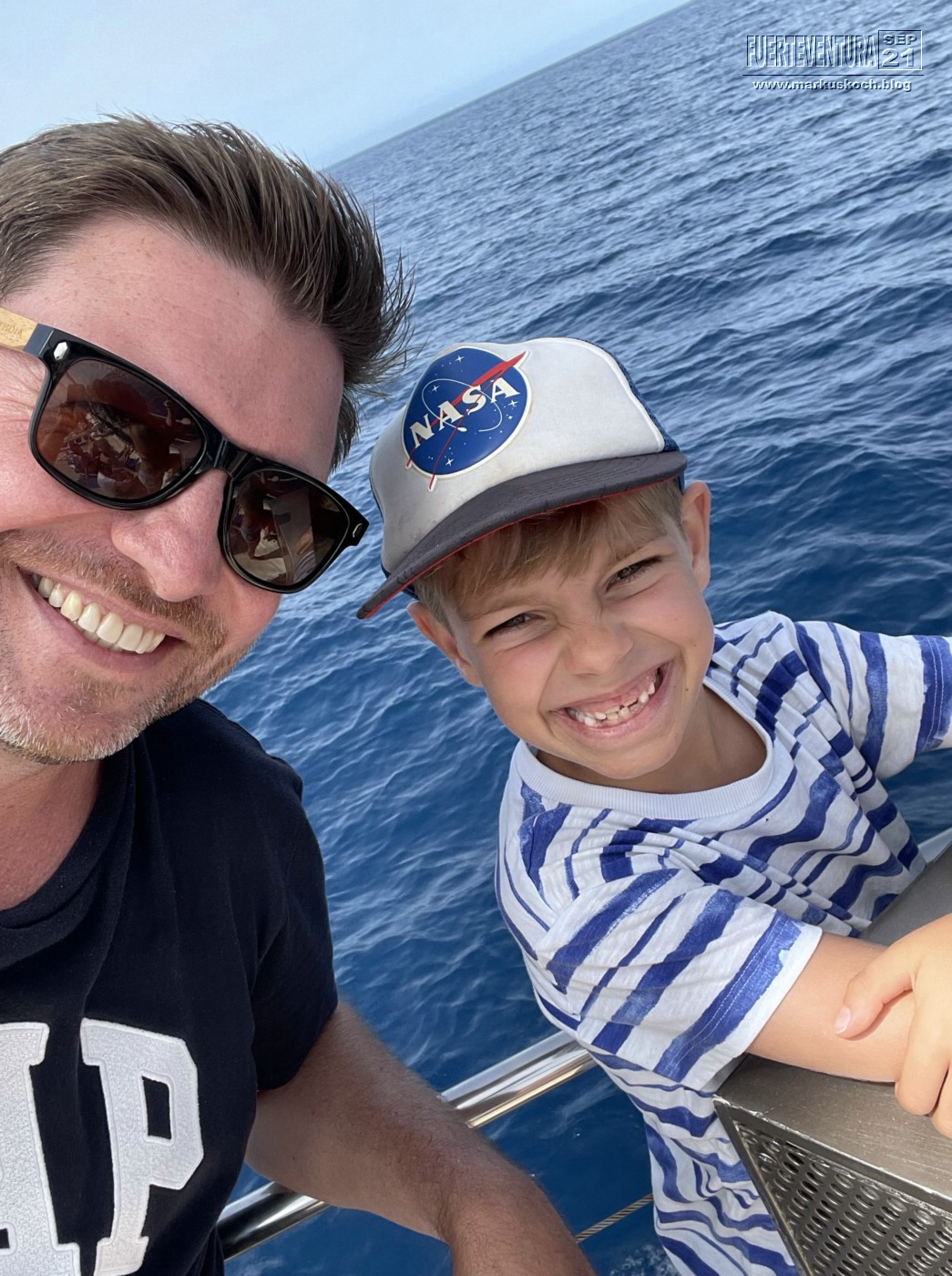 Tatsächlich konnten wir Schweinswale & viele Delfine sehen. Dann konnten wir noch Mittagessen und im Meer baden. Luca ist sogar vom Katamaran ins Wasser gesprungen. Mit einer kleinen Partyrunde endete der Ausflug wieder im Hafen von Morre Jable. Ein gelungener Ausflug.