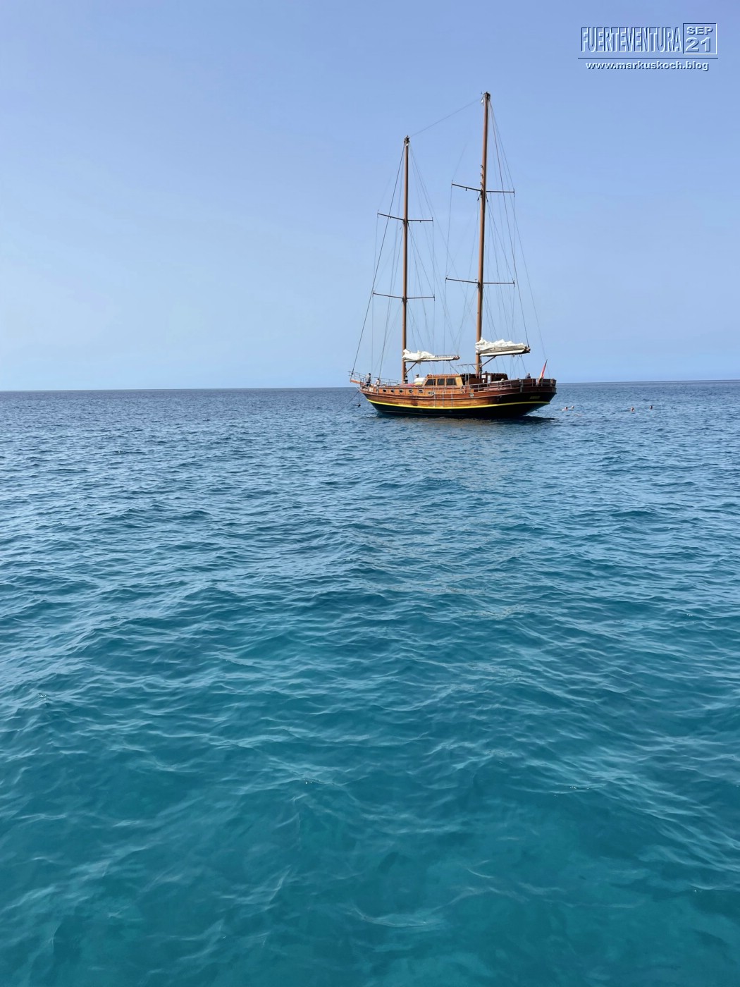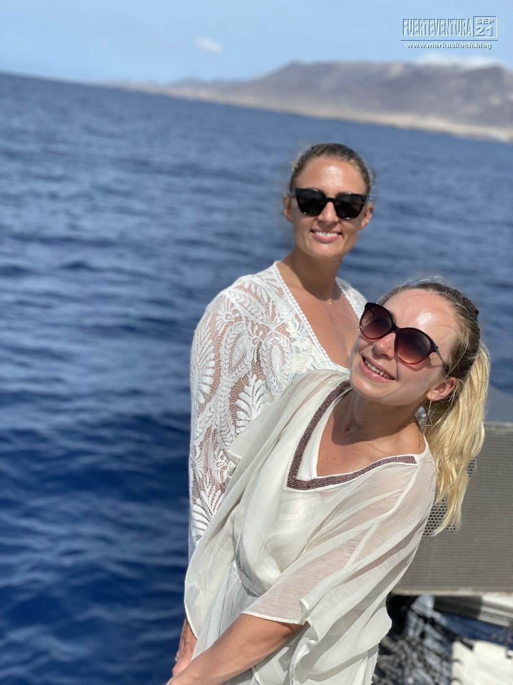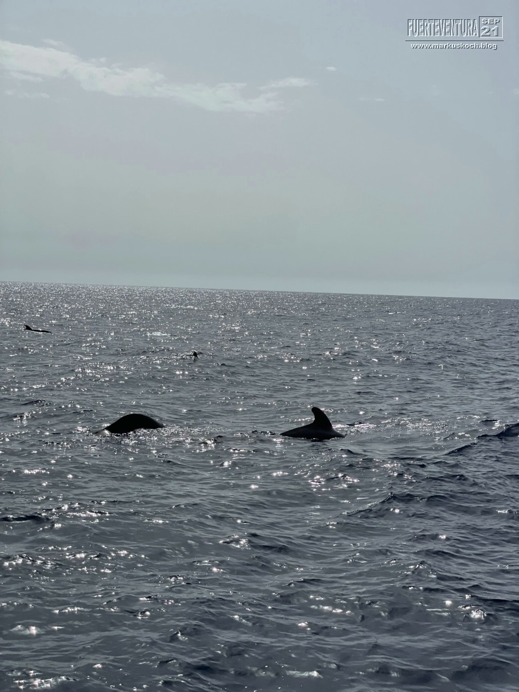Tatsächlich konnten wir Schweinswale & viele Delfine sehen. Dann konnten wir noch Mittagessen und im Meer baden. Luca ist sogar vom Katamaran ins Wasser gesprungen. Mit einer kleinen Partyrunde endete der Ausflug wieder im Hafen von Morre Jable. Ein gelungener Ausflug.
