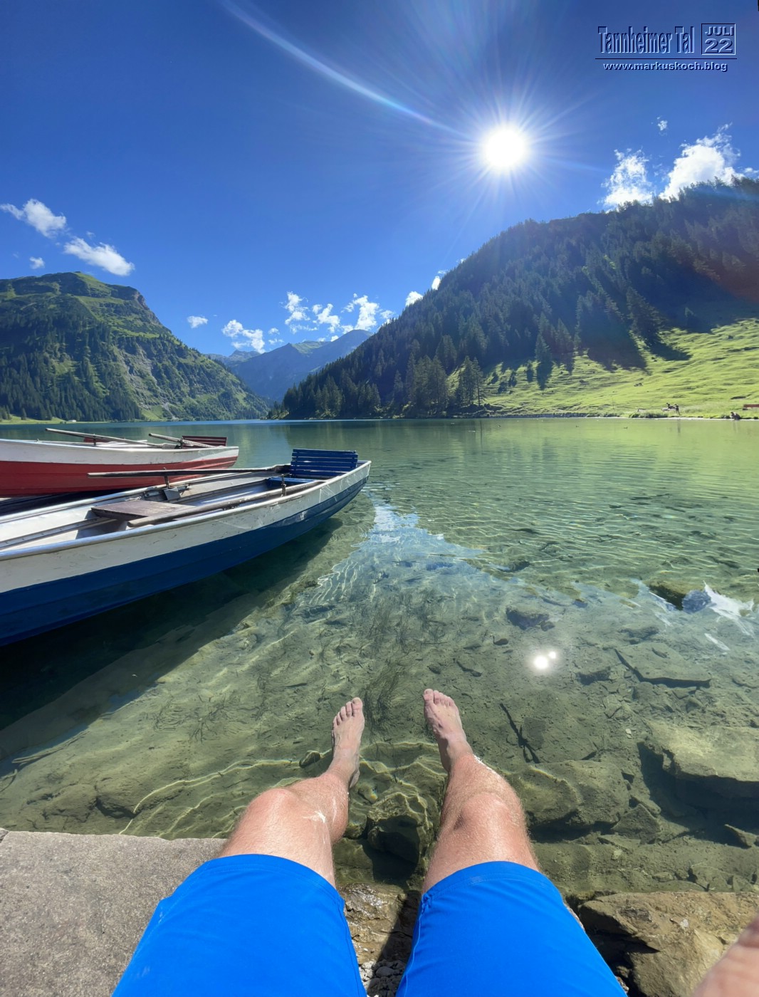 Auf dem Plan stand heute eine Wanderung vom Vilsalpsee zum Schrecksee und dann weiter zur Landsberger Hütte und wieder zurück. Eigentlich wollte ich auf dem Vilsalpsee mit dem SUP fahren, war aber verboten, so dass ich dann auf den Haldensee im Tal bin, welcher wunderschön warm war und mega Farben hatte.