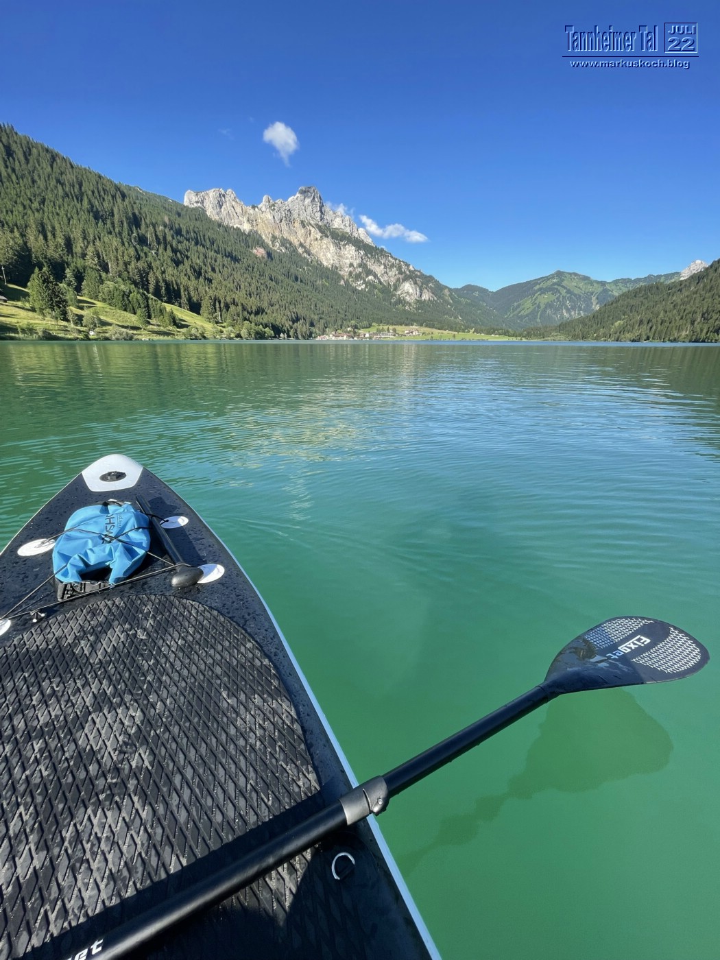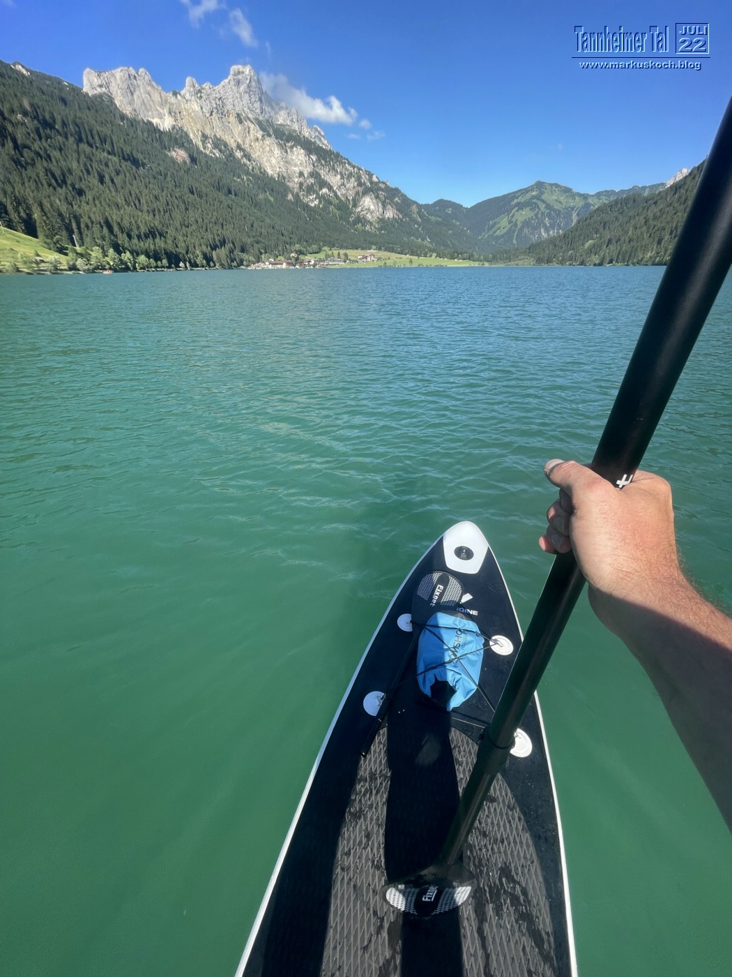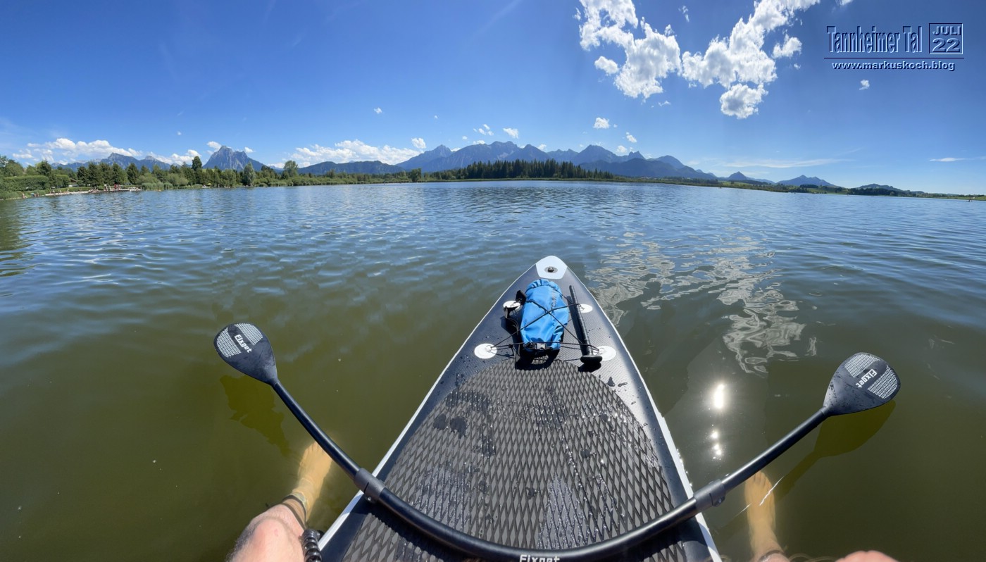 Auf dem Heimweg machte ich halt am Hopfensee, auf dem ich mit dem SUP noch etwas paddelte.