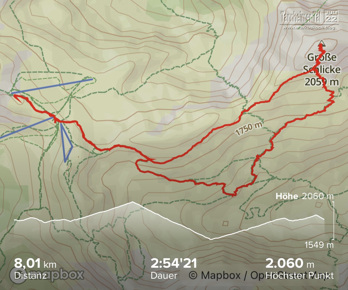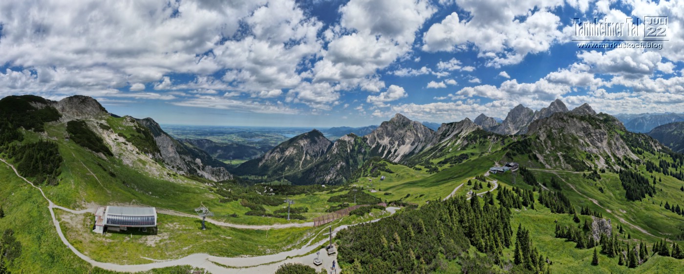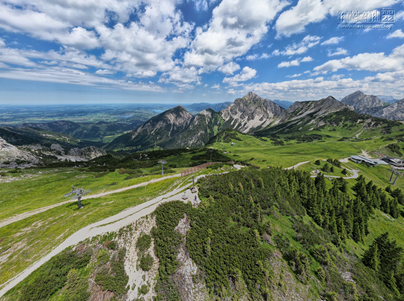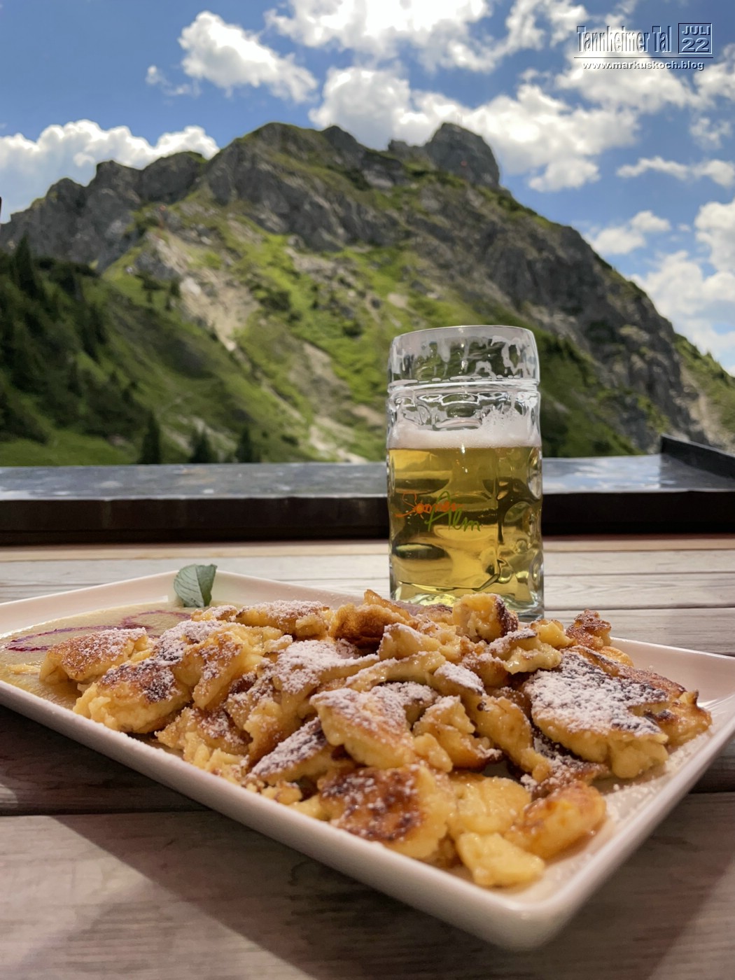 Für Sonntag wollte ich ein etwas kürzere Tour machen. Da beim CG die Liftkarte dabei war, nutze ich sie und startete die Wanderung erst am Berg. Es ging auf die Große Schlicke mit tollem Blick ins Allgäu. Dann ging es zur Füssener Hütte und wieder mit der Bahn nach leckerem Kaiserschmarrn ins Tal.