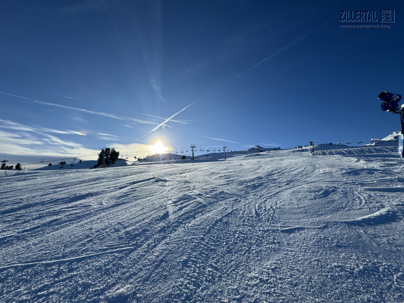 Ich hatte Urlaub und das Wetter war sehr gut gemeldet, sodass ich spontan für 2,5 Tage zum Skifahren in Zillertal bin. Ging nicht anders, dass ich am Dienstag erst um 13 Uhr im Lift saß.