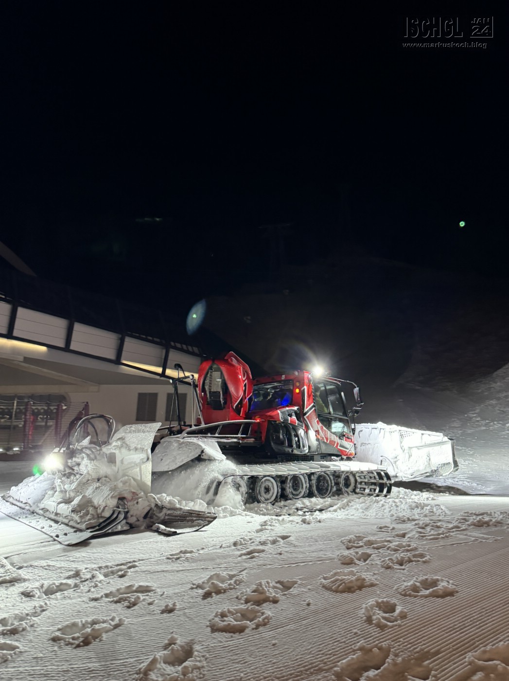 Und am Abend hatten wir die zufällige Chance, mit einem Pistenbully eine kleine Runde mitzufahren. Hat ihm natürlich auch super gefallen 🙂