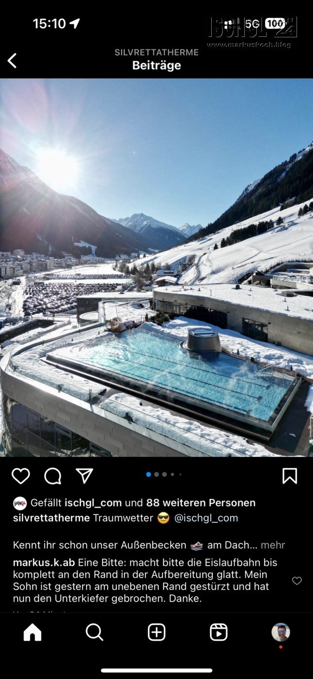 Heute wollten wir nicht ganz so lange Skifahren, um ein kleines Nachmittagsprogramm zu machen. Wollten erst in der neuen Therme mit Eislaufbahn auf dieser ein paar Runden drehen, bevor wir dann noch in die Therme gegangen wären.