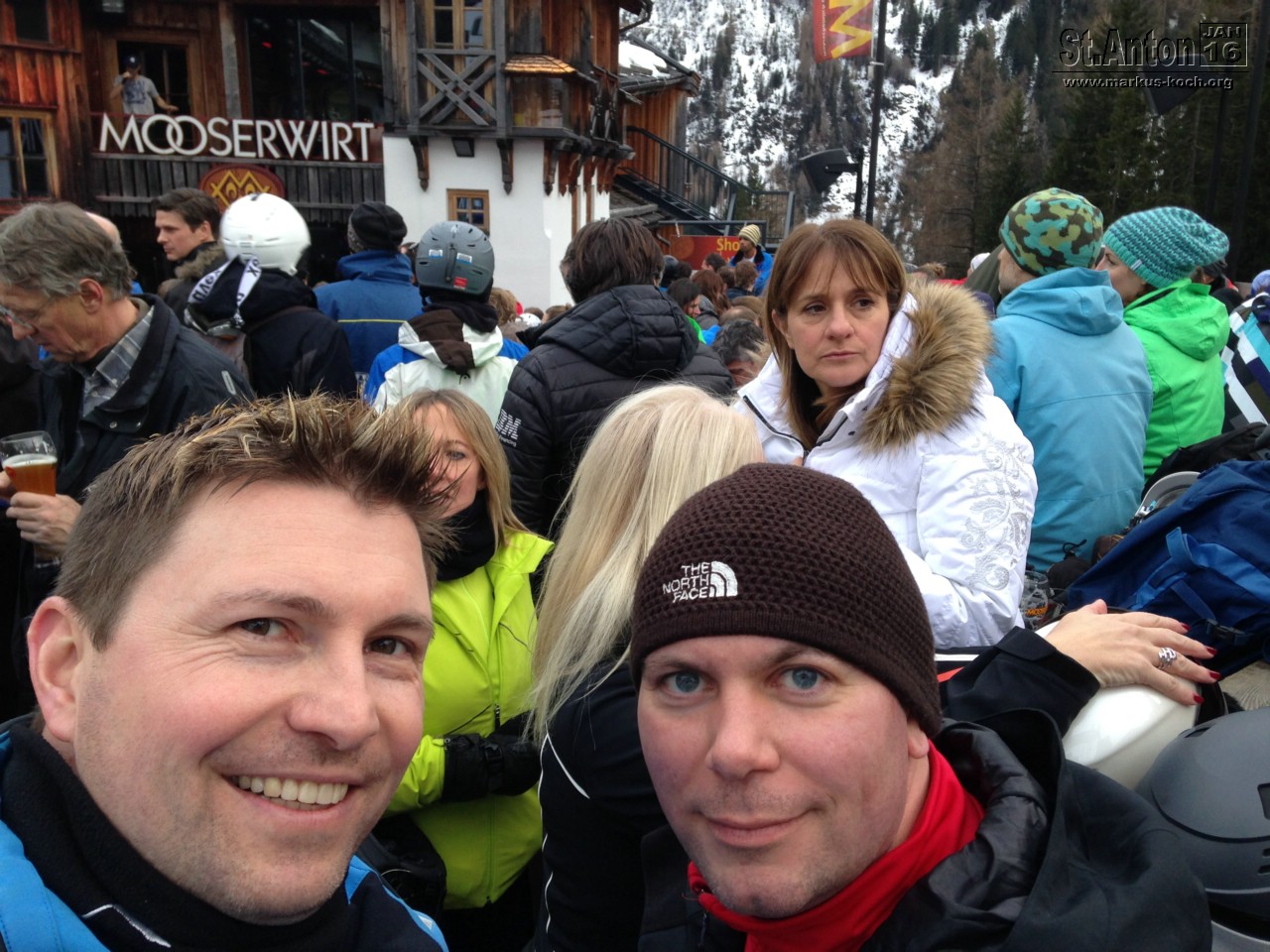 Apres-Ski beim Heustadl und Mooserwirt, danach Duschen, Essen und Abends nochmal in die Fußgängerzone von St. Anton.