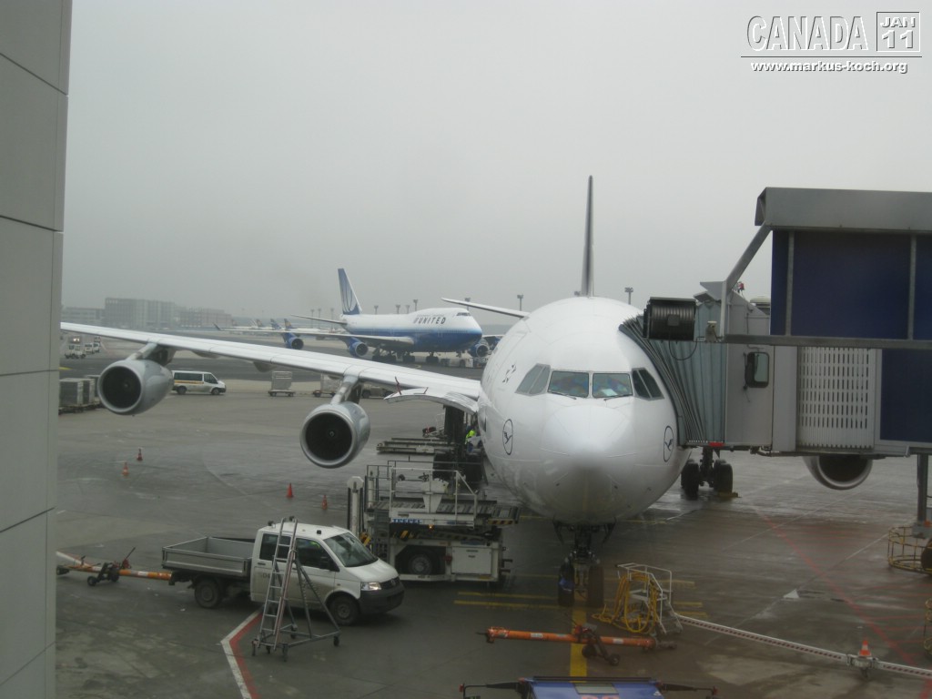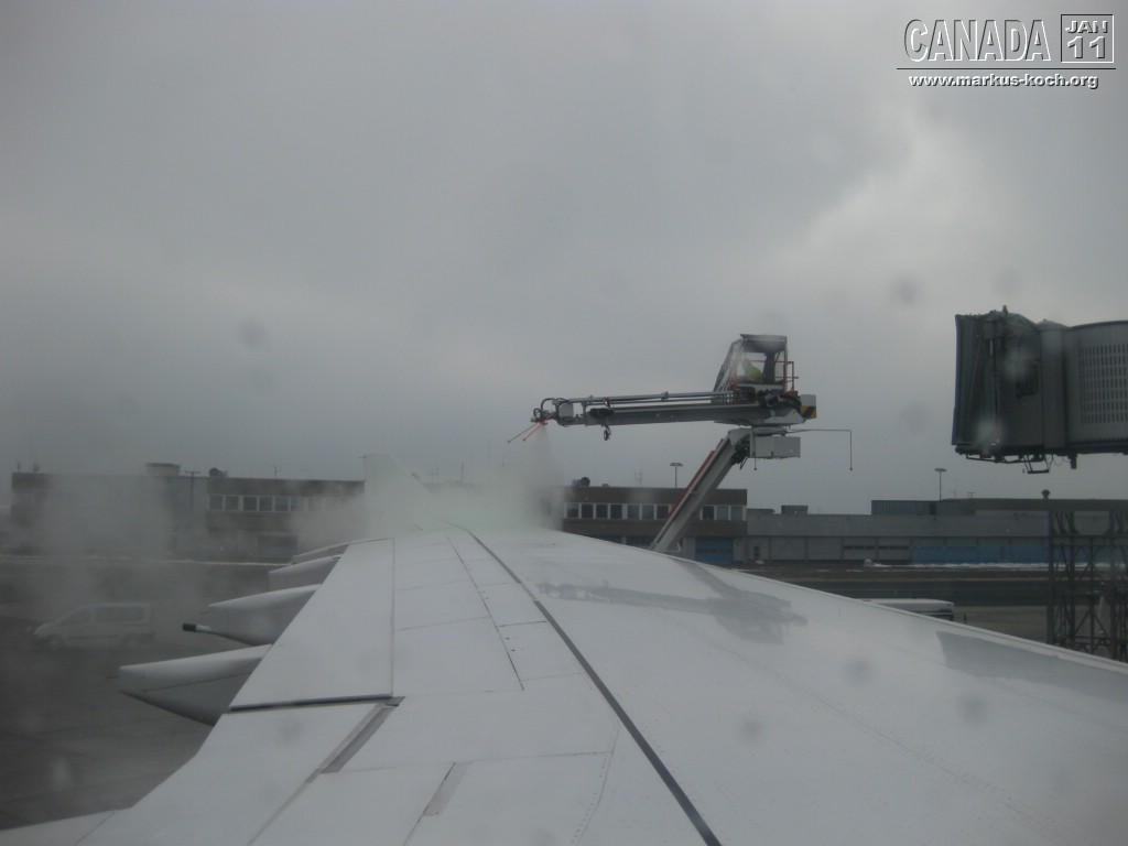 4.1. Flug von Frankfurt nach Vancouver war zwar eine Stunde später dran, da wir noch enteist werden mussten. Da ich im Winter noch nie geflogen bin, war das auch neu für mich. Wir saßen direkt am Flügel, sodass wir dies genau beobachten konnten. Interessant, was das für ein Gel ist, das sich beim Start verflüchtigt.