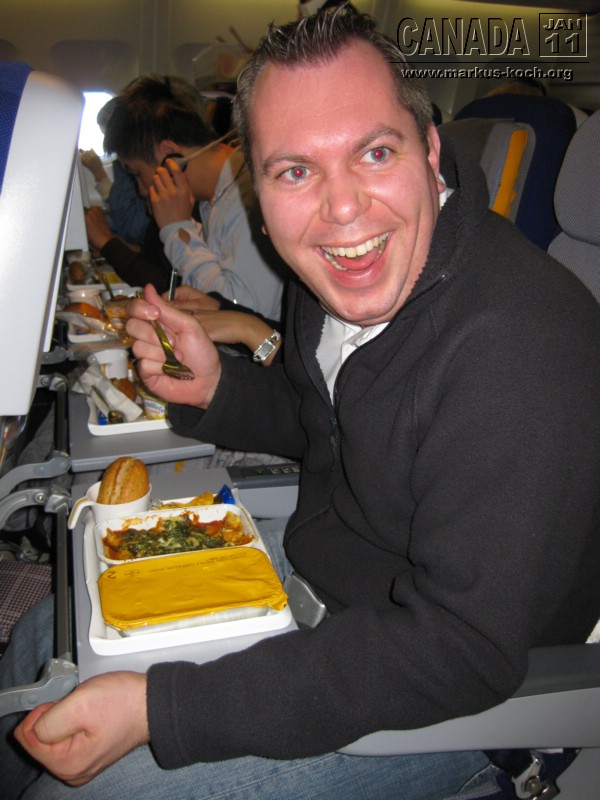 Gleich geht unser Flug nach Canada! Wir sitzen gemütlich am