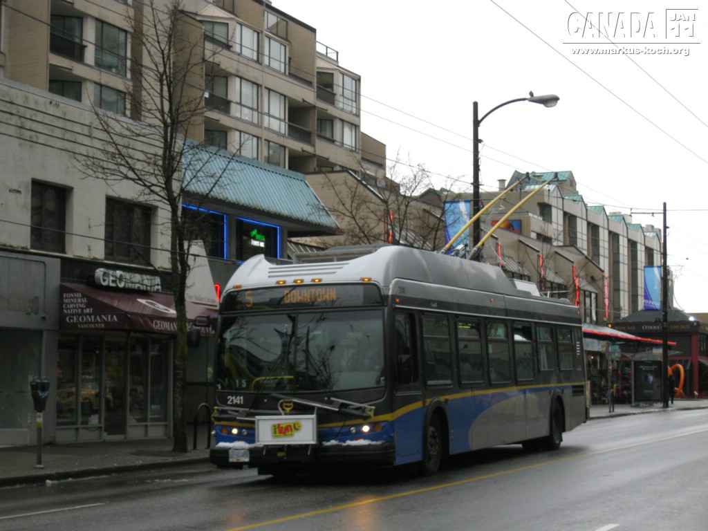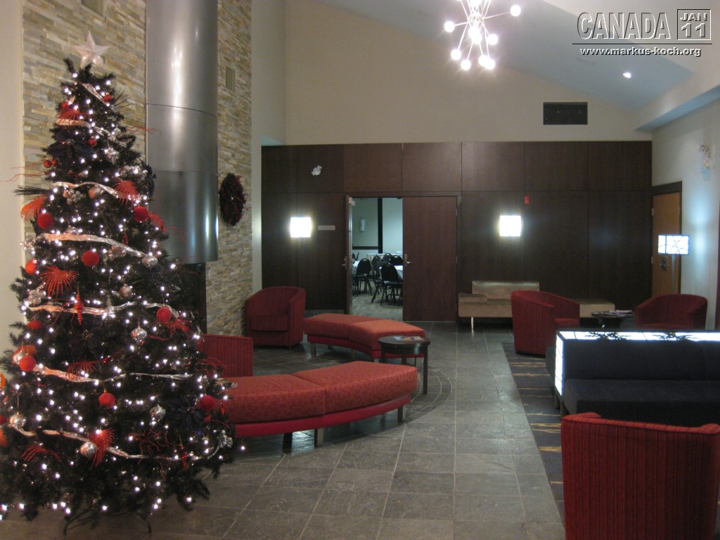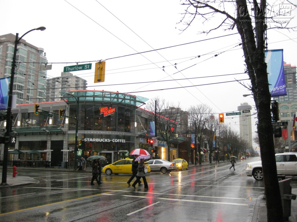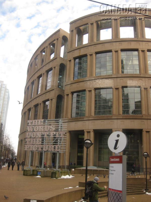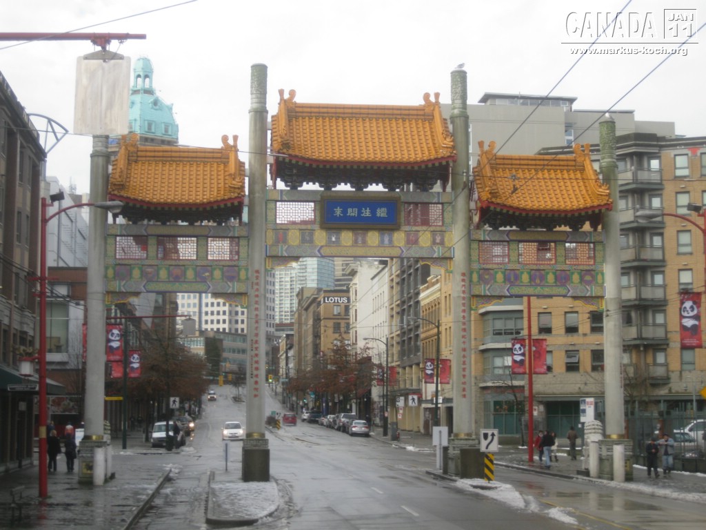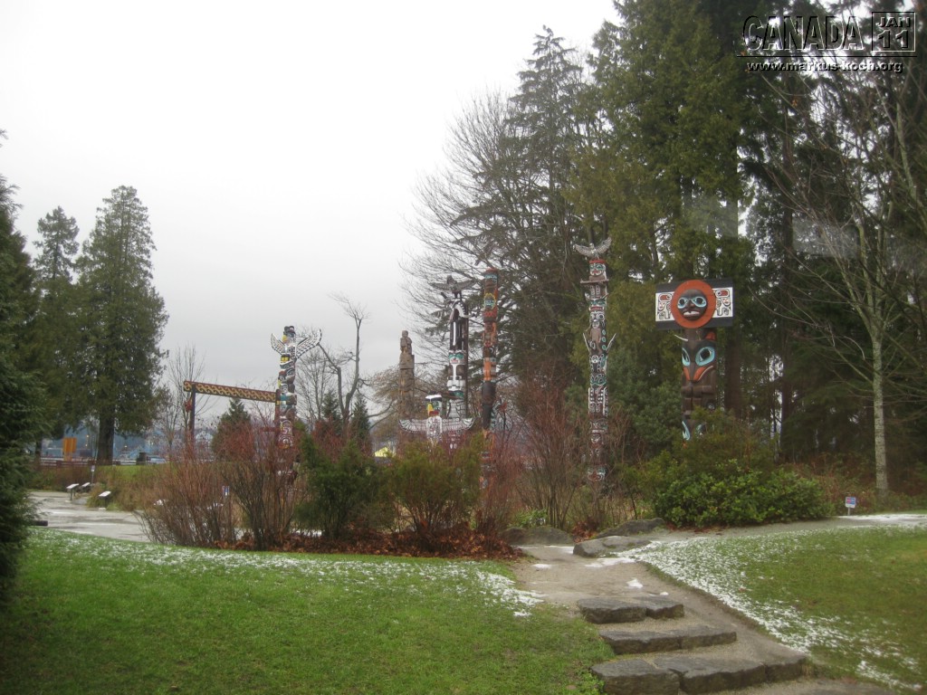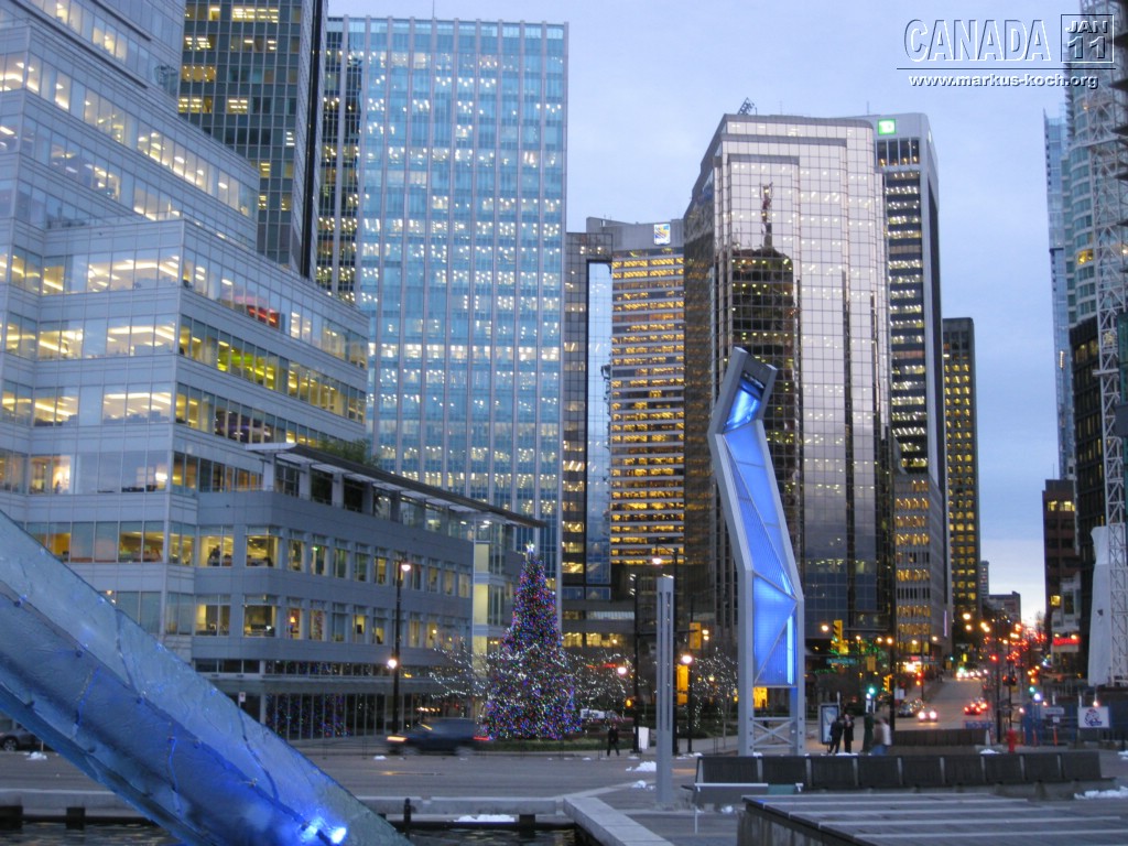 Aufgewacht bei Schneefall in Whistler wurden wir um 7 Uhr von Pacific Coach abgeholt und nach Vancouver gebracht. Dort mussten wir ca. 600 m mit unserem Gepäck zu unserem Hotel Blue Horizon laufen. Auch wenn sich 600 m nicht viel anhört, es war mit dem ganzen Gepäck eine ganz schöne Strecke, vor allem auch für Udo, der leider immer noch Probleme mit seinem Unterschenkel hatte.