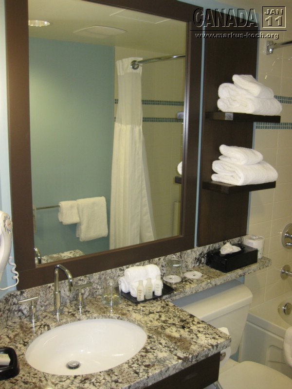 Nach dem Frühstück pendelten wir noch etwas durch eine Mall. Canada ist um 10-20% Teurer als in den USA – Beispiel im Hollisterladen ist ein Shirt mit kanadischen und amerikanischen Preisen ausgezeichnet: 5-10 $ Teurer, bei etwa gleichem Kurs. Hinzu kommt noch, dass in Kanada auf alles 12,5% Tax drauf zur rechnen sind. In den USA sind es etwas weniger (glaube 7%?).