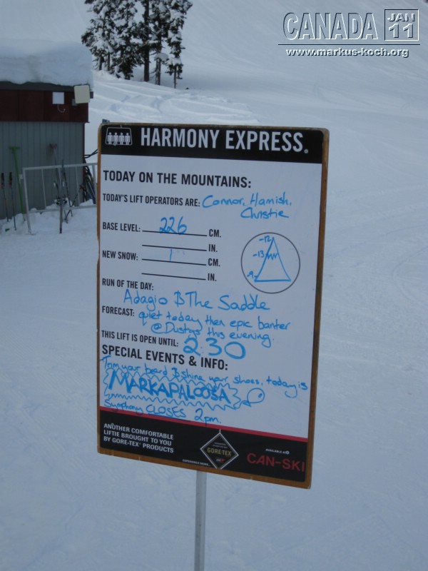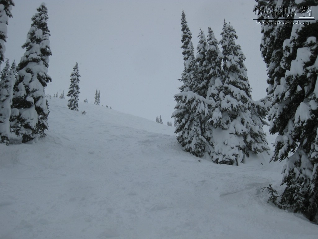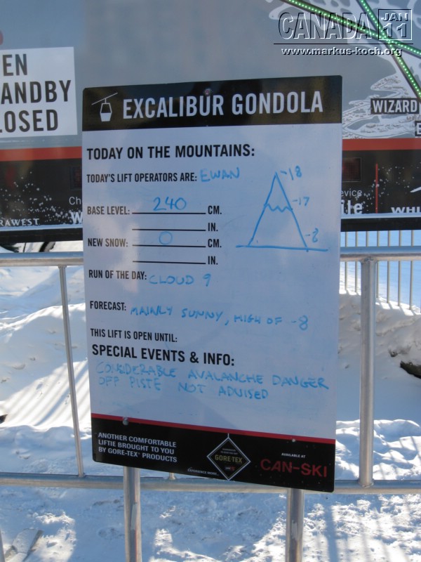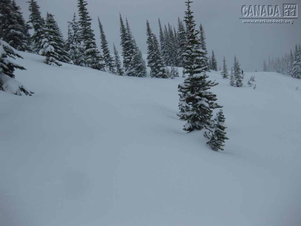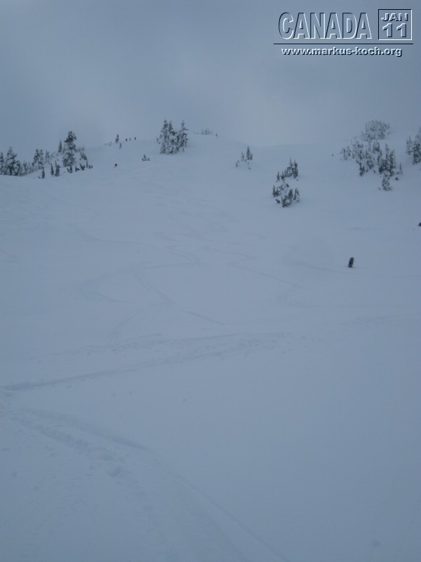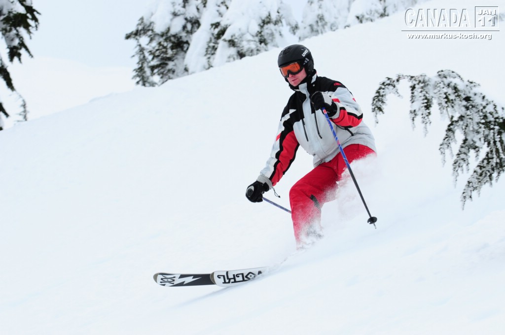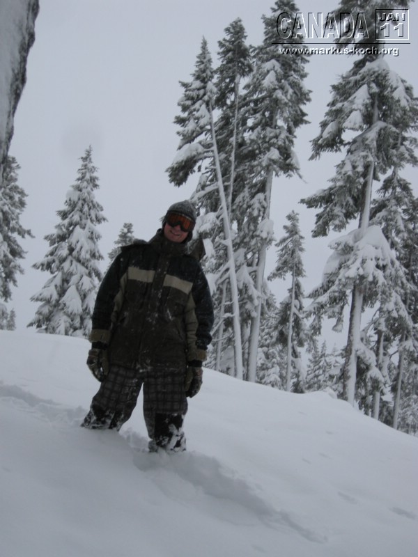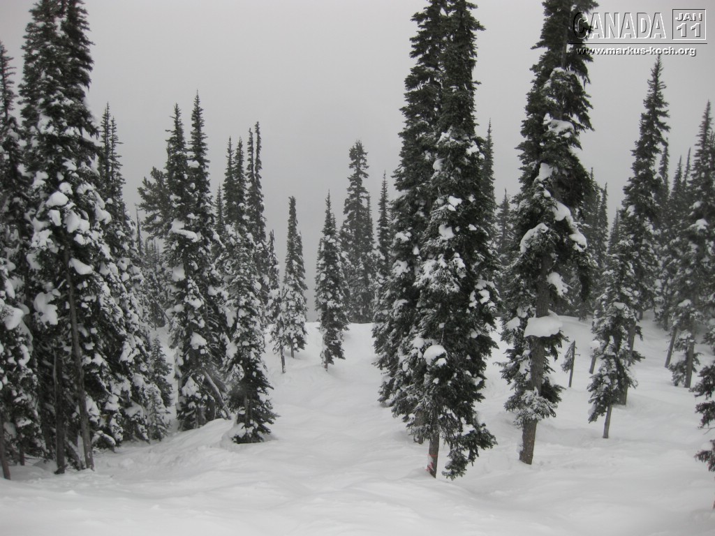 Heute am 5.1. sind wir mit Schneefall aufgewacht. Im Laufe des Tages hat es im Dorf sicher 10-15 cm Neuschnee gegeben. Uns Jungs hat das keineswegs aufgehalten den Blackcomb-Mountain mit Skieer zur erkunden. Auf einer Teilstrecke haben wir den Neuschnee-Hang zu entjunfern – war echt geiler Schnee, wie auf Puderzucker konnten wir den Berg hinabgleiten 🙂 Genial war eine schwarze Abfahrt durch den Wald!