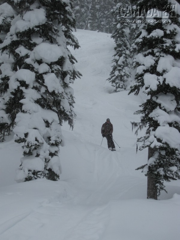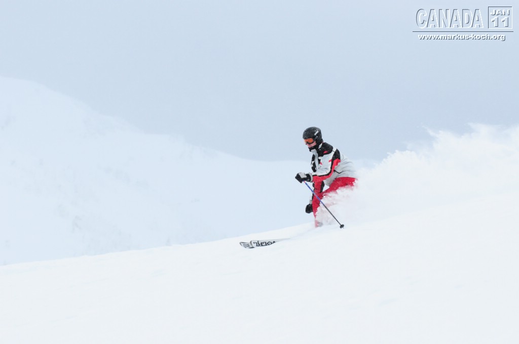Genial mit Big Fat Skier ging es dann in den Powder hinein und unten angekommen wurden wir wieder nach oben gebracht. So ging es den ganzen Tag 7-8x. Dabei wurden auch Bilder von einem Fotografen geschossen, die ich aber leider noch nicht zeigen kann, da sie auf DVD sind und ich hier keinen DVD Player dabei habe.