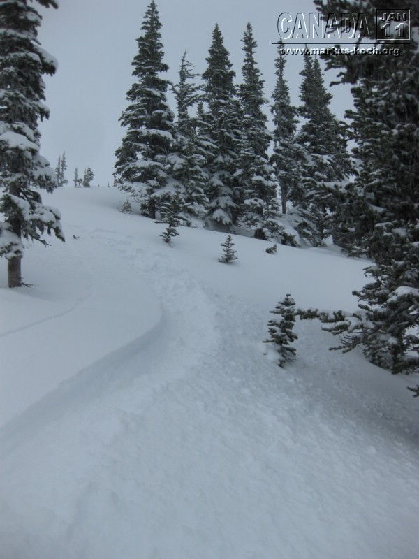 Es hat beim Aufwachen gerenet und wir haben mit einem nicht wirklich schlechten Skitag gerechnet. Nachdem wir an der Bergstation waren, wo es nur so Pfiff und geschneit hatte, war unsere Laune auch noch nicht viel besser. Aber es nach dem „Breakfast for Champions“ (ne Dose Bud ;)) fuhren wir los und es war endlos geiler Tiefschnee. Powder pur. Man konnte sich einfach fallen lassen  – ein fantastisches Gefühl! Auch „abseits“  in den Wäldern war das alles so genial!