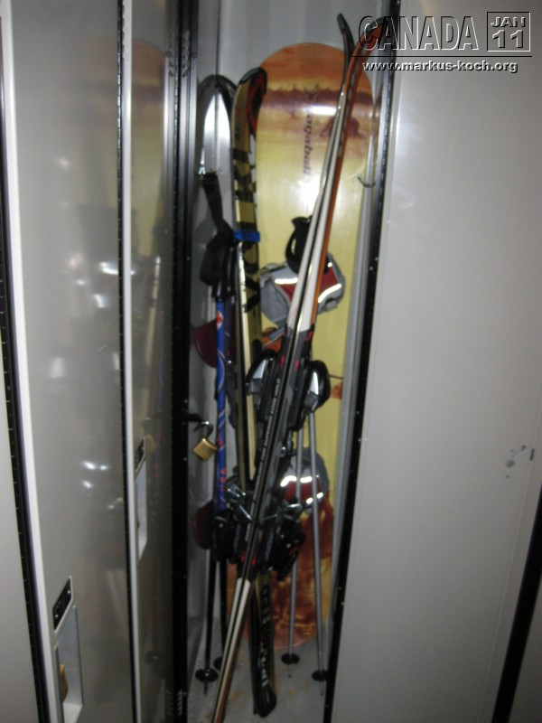 Als wir dann in Vancouver (Canada) gelandet sind konnten wir unsere Koffer und Skieer entgegennehmen und fuhren mit einem Bus nach Whistler in das Hotel Aava. Leider ist das Zimmer etwas klein zu dritt, aber wir können uns trotzdem gut organisieren! Der Skikeller ist sehr interessant, es sind abschließbare Spinte, was man so aus den Alpen nicht wirklich kennt. Der Spa-Bereich wird erst am Donnerstag mal getestet 🙂 Ansonsten ist Whistler Village ein schönes Dorf mit großer Fußgängerzone und vielen Geschäften zum Shoppen.