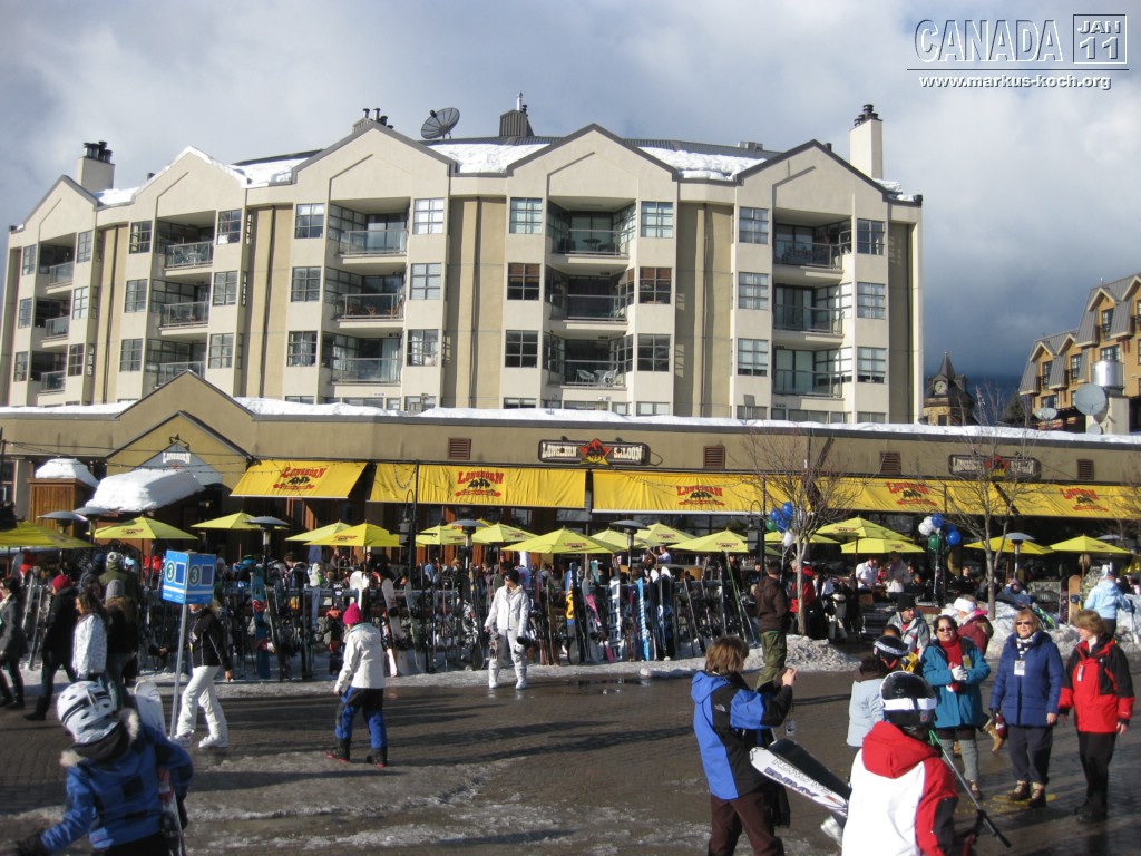 Nach dem Skifahren waren wir erst im Pool, dann im Subway Abendessen und anschließend durch Whistler Village laufen und in den vielen Shops ein wenig gestöbert. Jedoch sind die Preise ganz schön hoch – trotz Dollar und „Sale“!