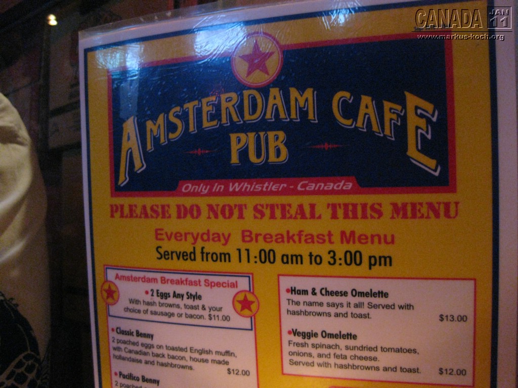 Am Abend waren wir im Amsterdam Pub. Auf der Straße und vor den „Night Clubs“ war überall viel los. Allerdings muss man sagen, dass hier – obwohl hier alles recht teuer ist – viele Jugendliche unterwegs waren. Wir fanden einen neuen kleinen Club im Keller, wo gott sei dank ausschließlich House aufgelegt wurde und das Durchschnittsalter nicht ganz so jung war. Sperrstunde ist in Whistler 2 Uhr – warum auch immer. Aber wir wollten dann auch ins Bett, da wir den Sonntag bei Sonnenschein schön genießen konnten.