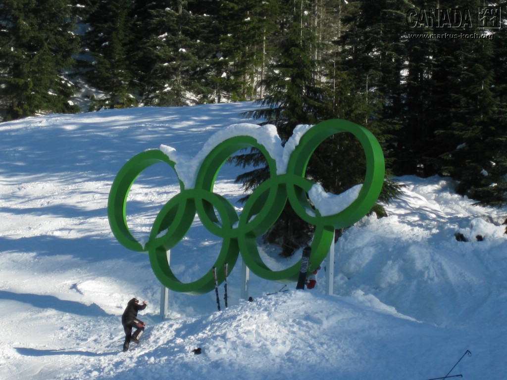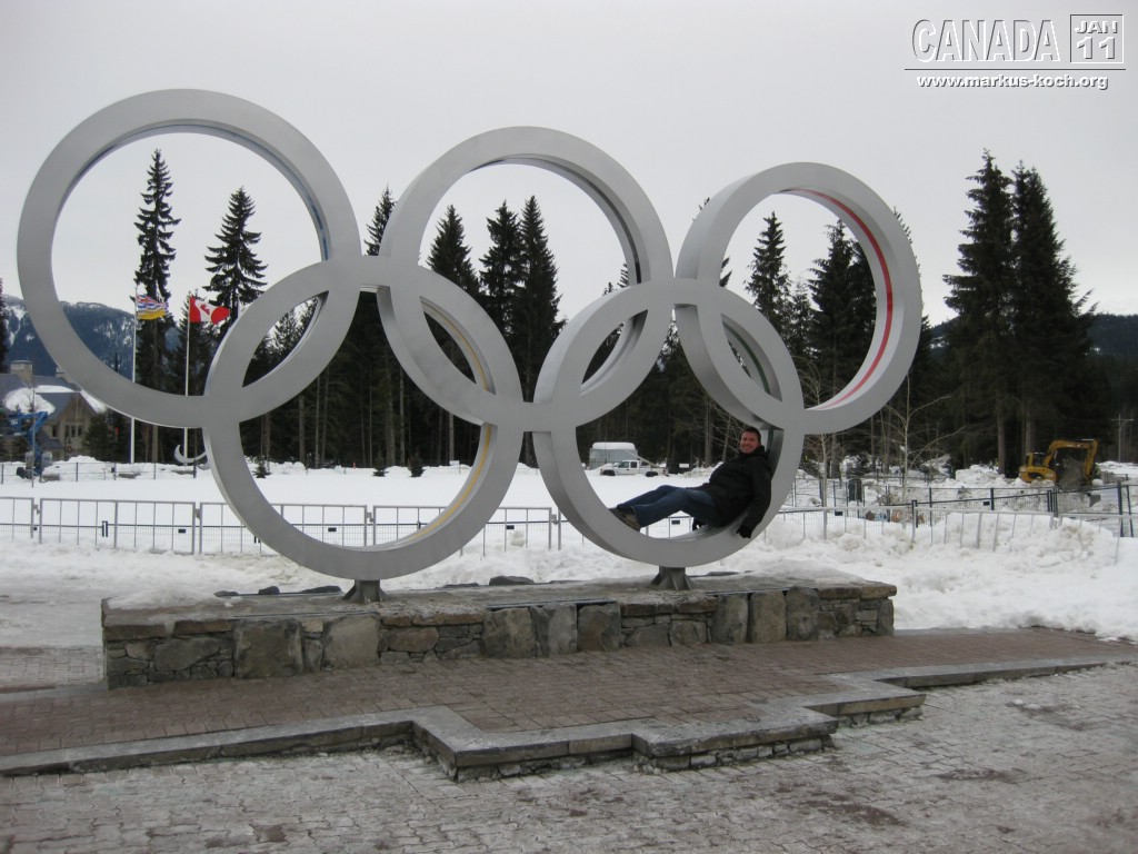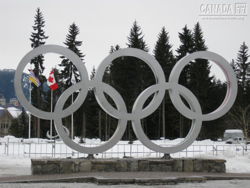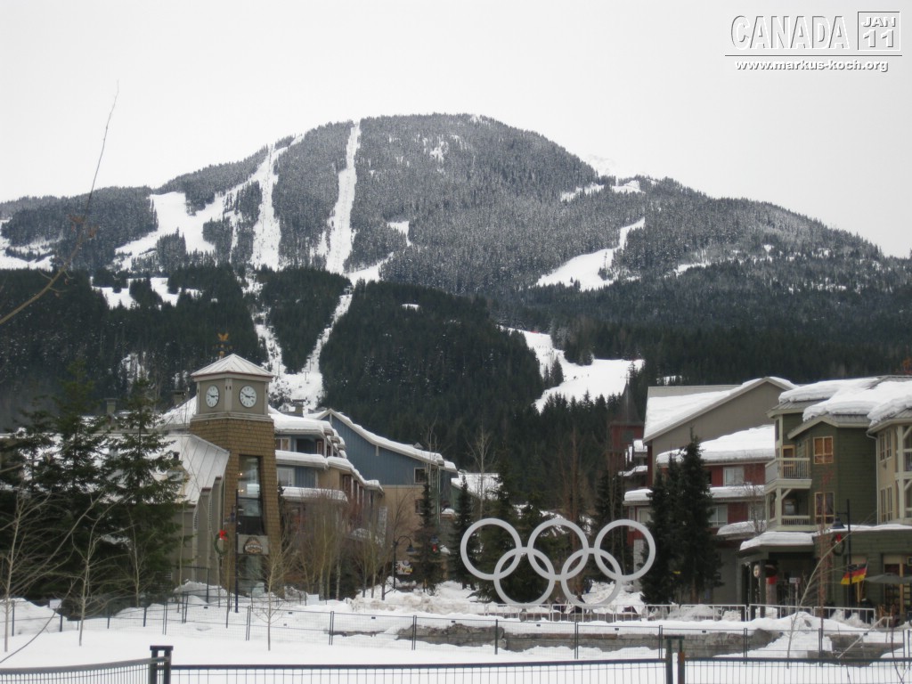 Nach dem Skifahren sind wir direkt ins Hotel, da wir noch bei Licht Bilder vom Dorf und den Olympischen Ringen machen wollten. Falls es jemand nicht mehr in Erinnerung hat: In Vancouver & Whistler fanden 2010 die Olympischen Winterspiele statt.