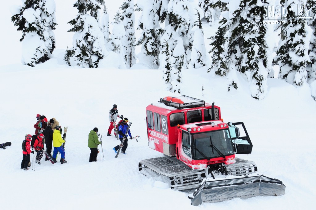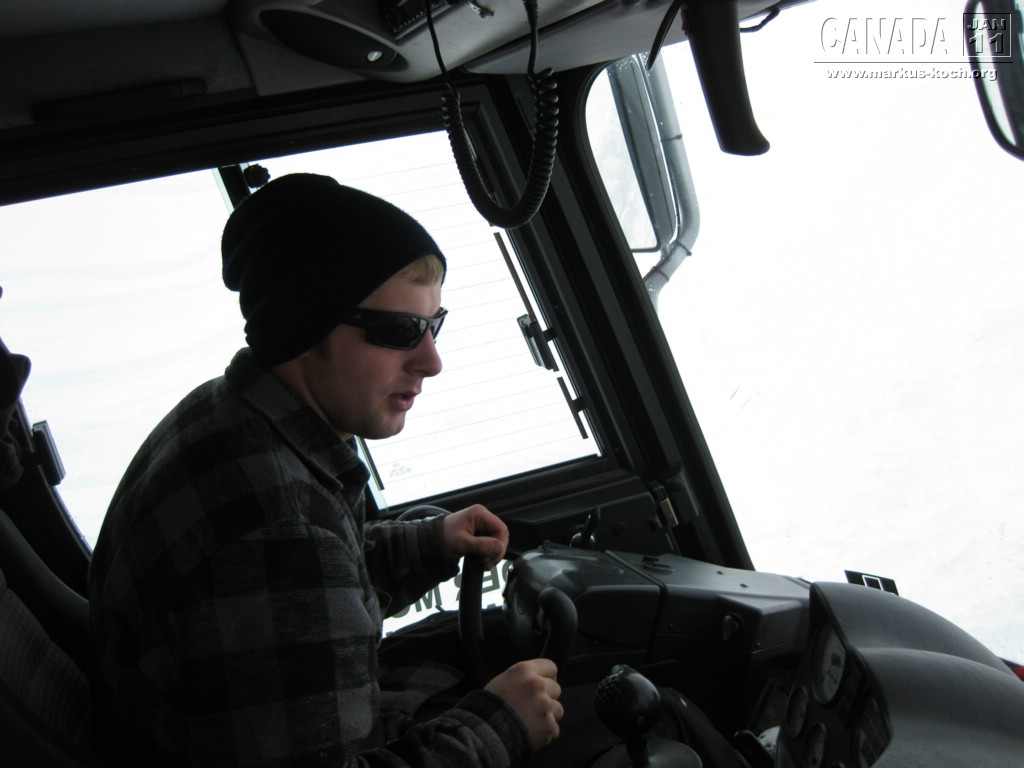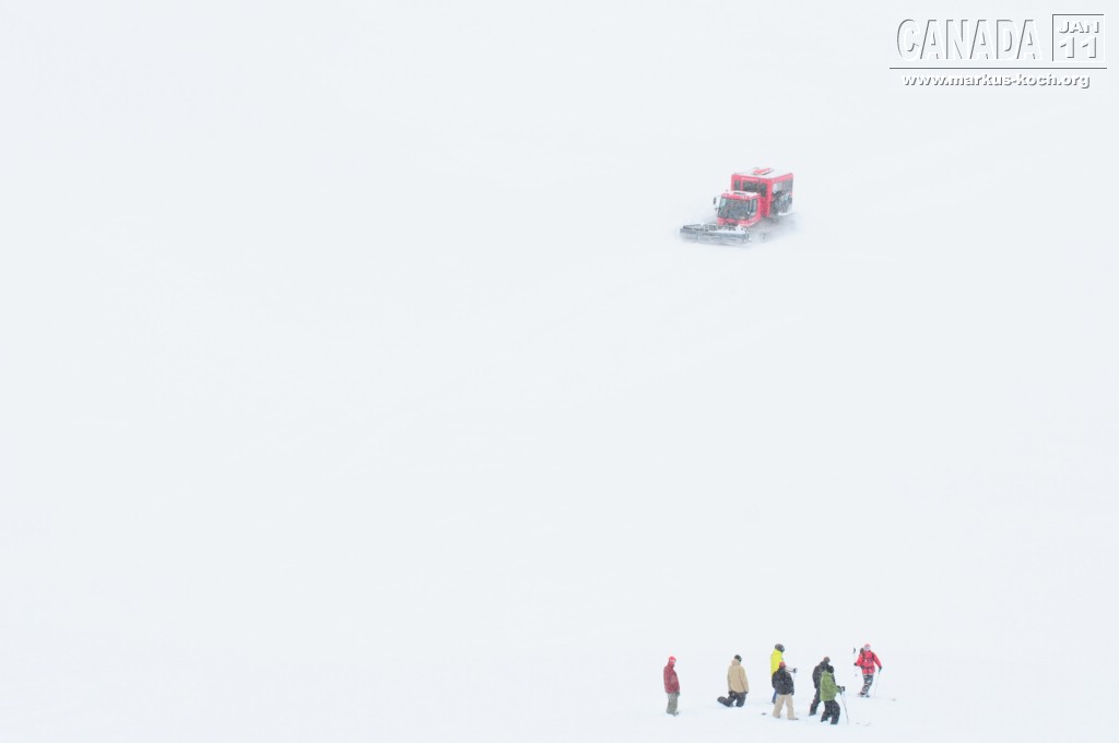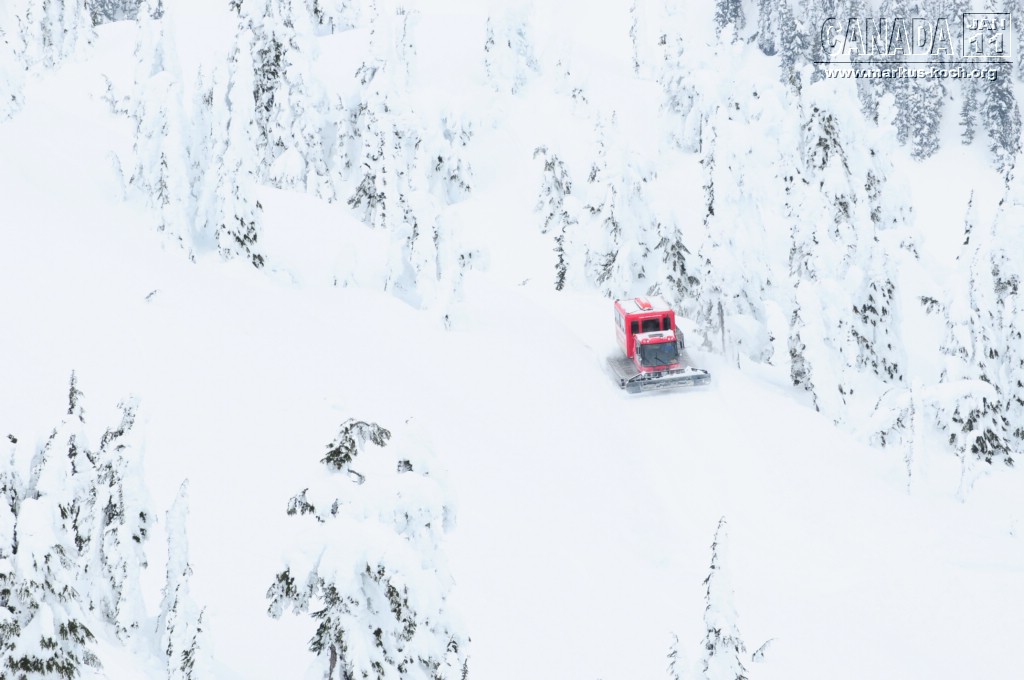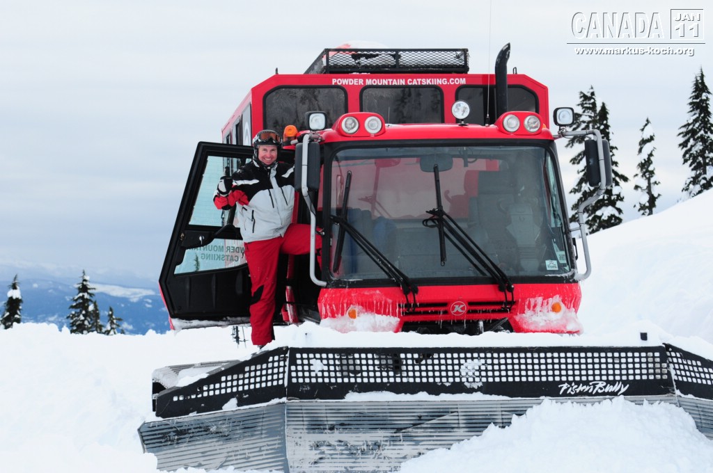 Morgens bin ich in einem Bus von Whistler in ein abgelegenes Gebiet gefahren. Dort war die Basisstation zum Catskiing. Weiter ging es mit dem Cat auf einem Berg, wo wir den ganzen Tag unterwegs waren. Während der ersten Auffahrt wurden uns die Lawinenpiepser erklärt, die es vor der ersten Abfahrt auch auszuprobieren galt.