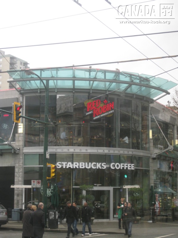 Ausgeschlafen hatten wir noch 3 Stunden Zeit bis unser Transferservice uns zum Flughafen Vancouver gefahren hat. In dieser Zeit suchten wir uns ein Starbucks zum Frühstücken. Wenn ich mich bei der Sightseeingtour nicht verhört habe, soll Vancouver über 200 Starbucks haben. An jeder Ecke zwei – nicht nur einer! Echt krass!