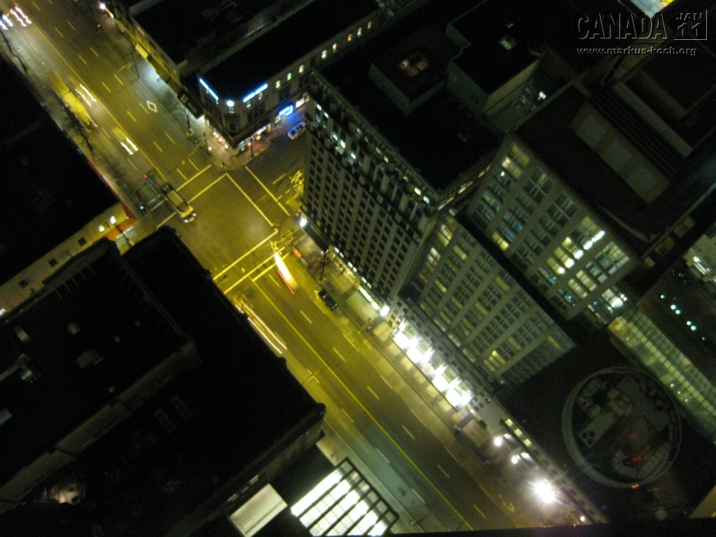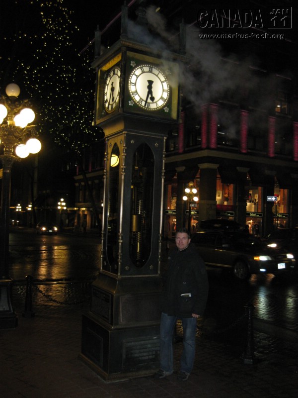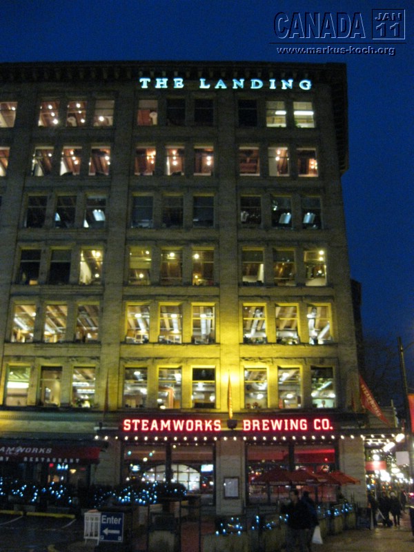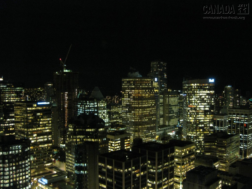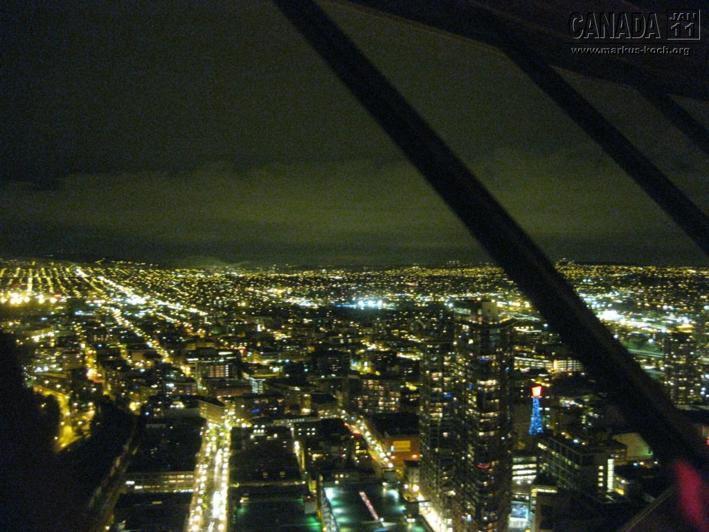 Nach 2-3 Stunden Aufenthalt dort ging es zu Fuß an der Waterfront zum Olympischen Feuer (das ja jetzt wieder aus ist) und von da weiter ins Gastown. Als die Frage des Abendessens aufkam und wir ein paar Deutsche in einem Souvenirshop getroffen hatten, stand für uns fest, dass wir unser letztes Abendessen in Canada im Aussichtstower „Top of Vancouver“ einnehmen wollten. Die Wahl hat sich tatsächlich gelohnt. Das während unseren Besuch zweimal drehende Restaurant hat unseren Geschmack voll getroffen. Und die Aussicht bei klasse Weitblick hat sich obendrein gelohnt!