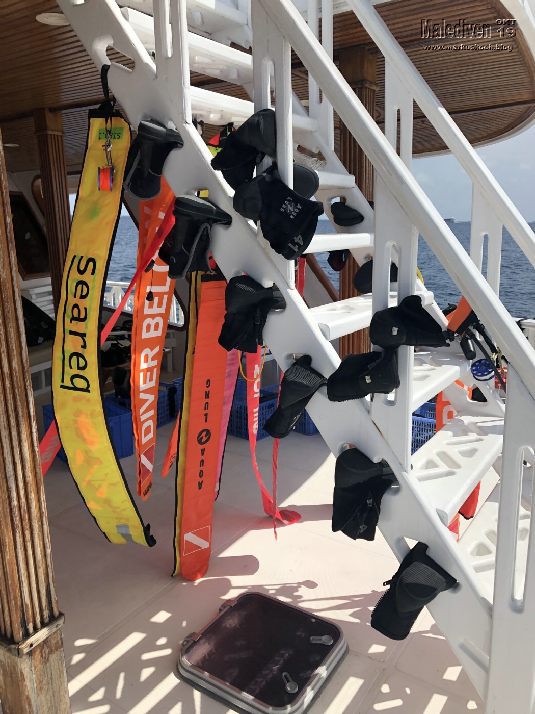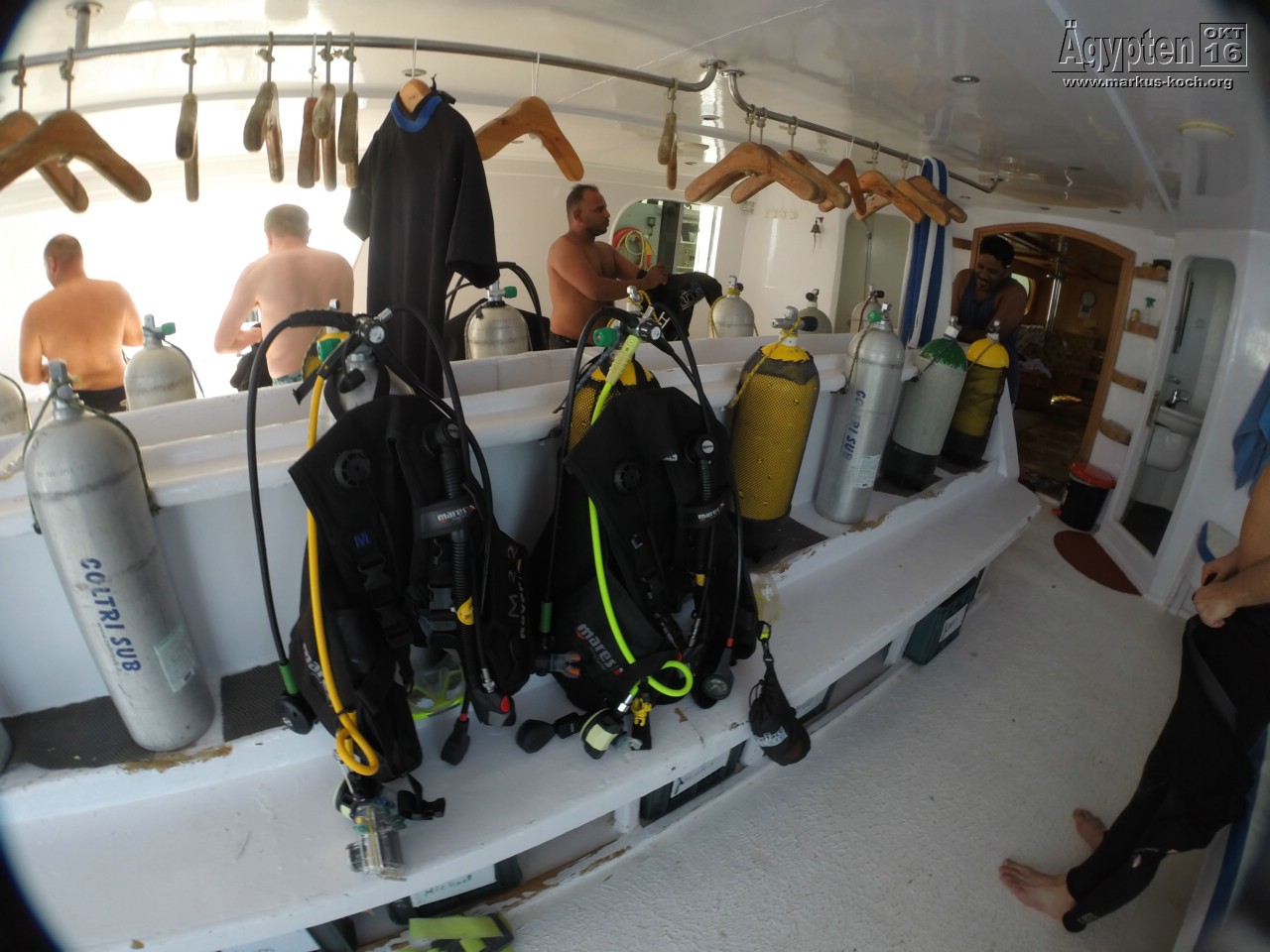 Dort wurden wir herzlichst von Alex & seinem Team in Empfang genommen. Die Zimmer wurden eingeteilt und es gab einen Mittagssnack. Anschließend bereiteten wir unser Tauchequipment vor und gewöhnten uns an das Boot.