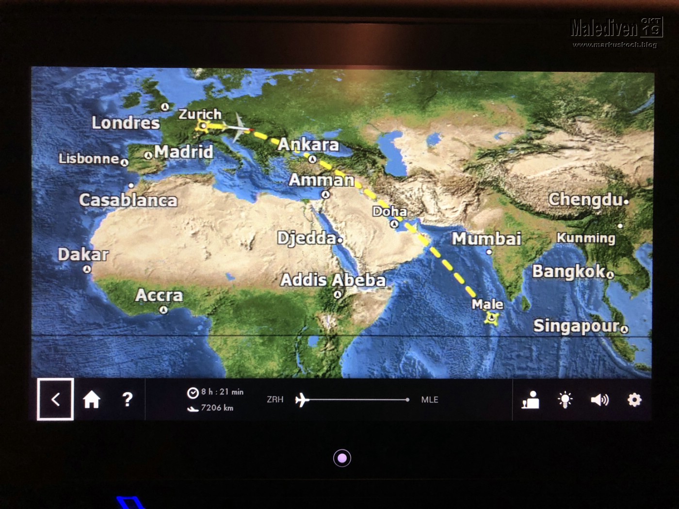 Der Flug ging per Lufthansa nach Zürich und von dort weiter mit Edelweiss nach Male.