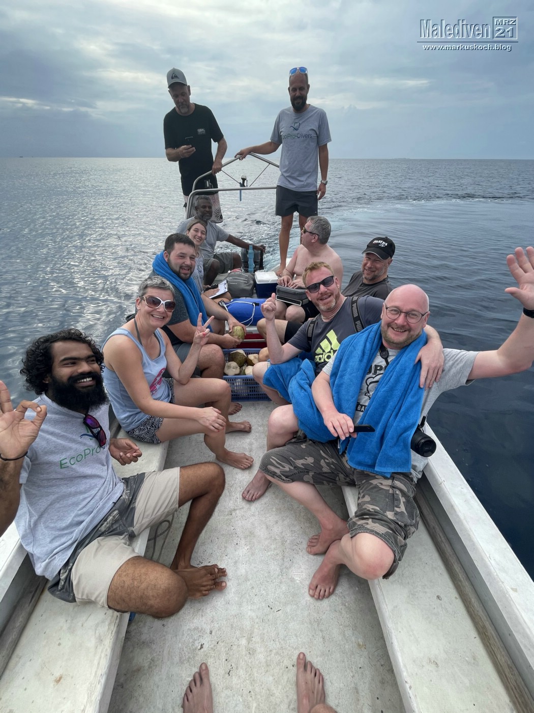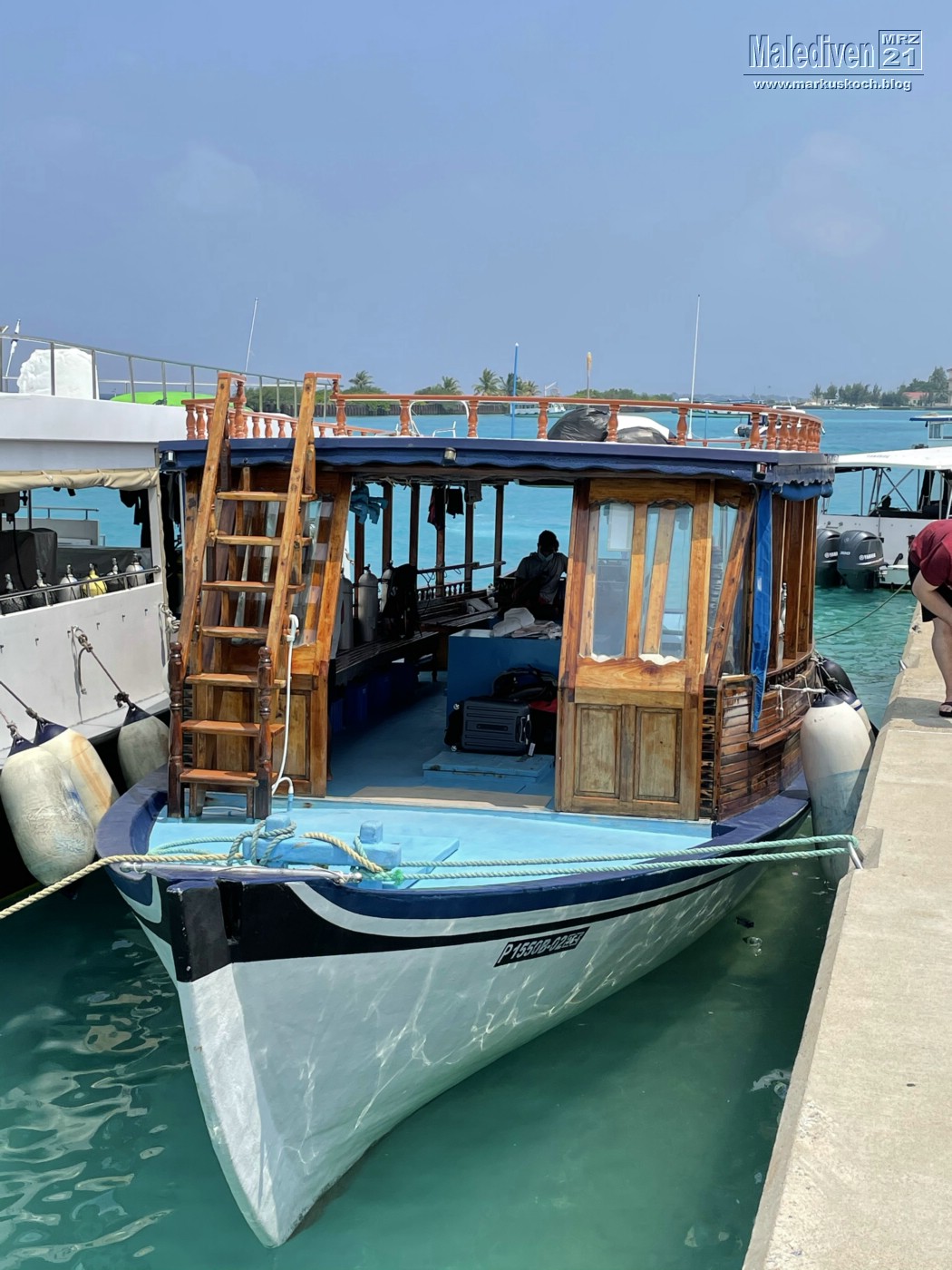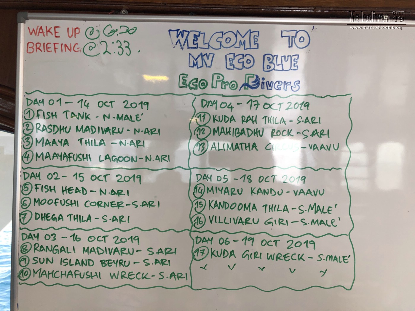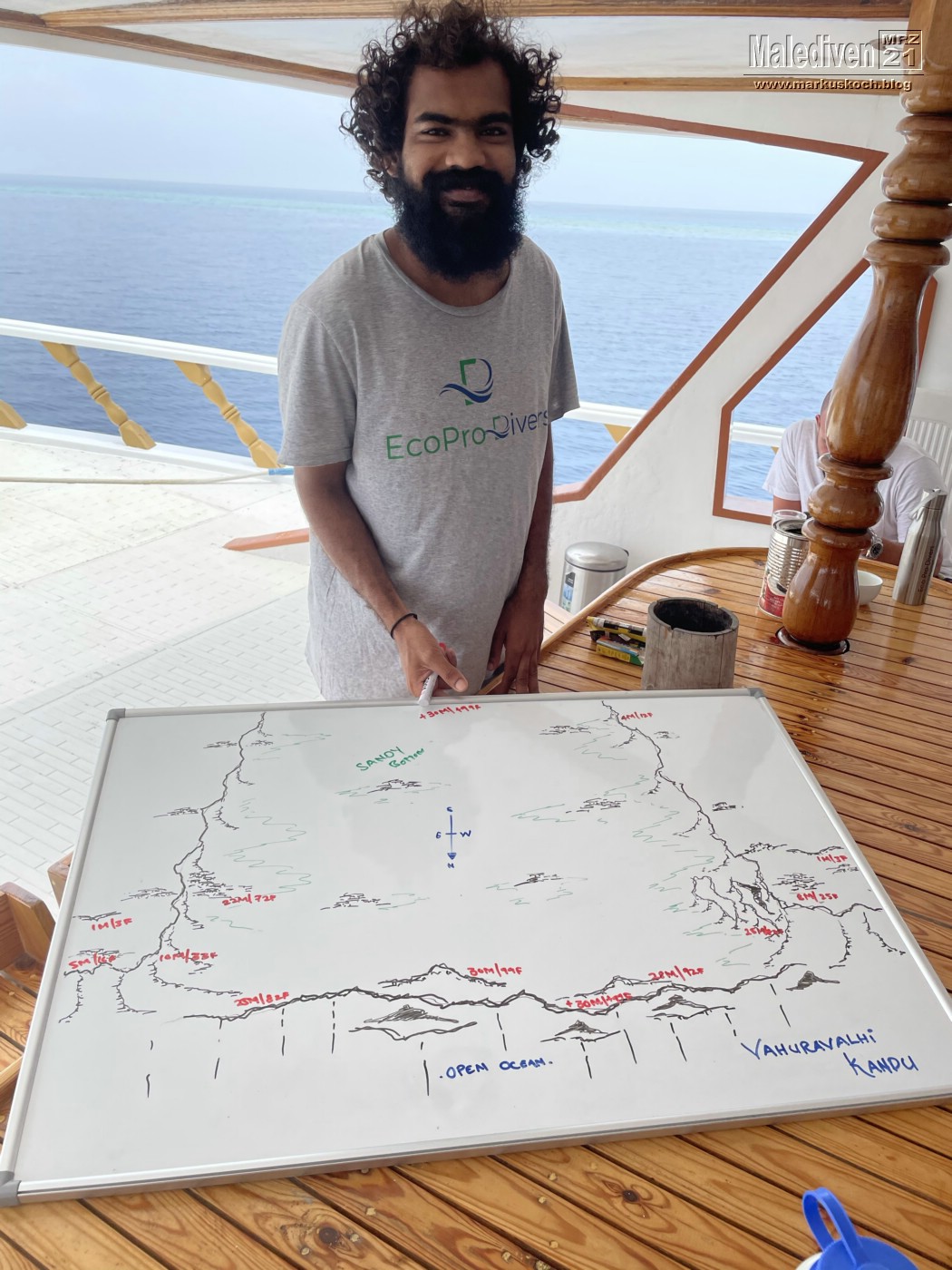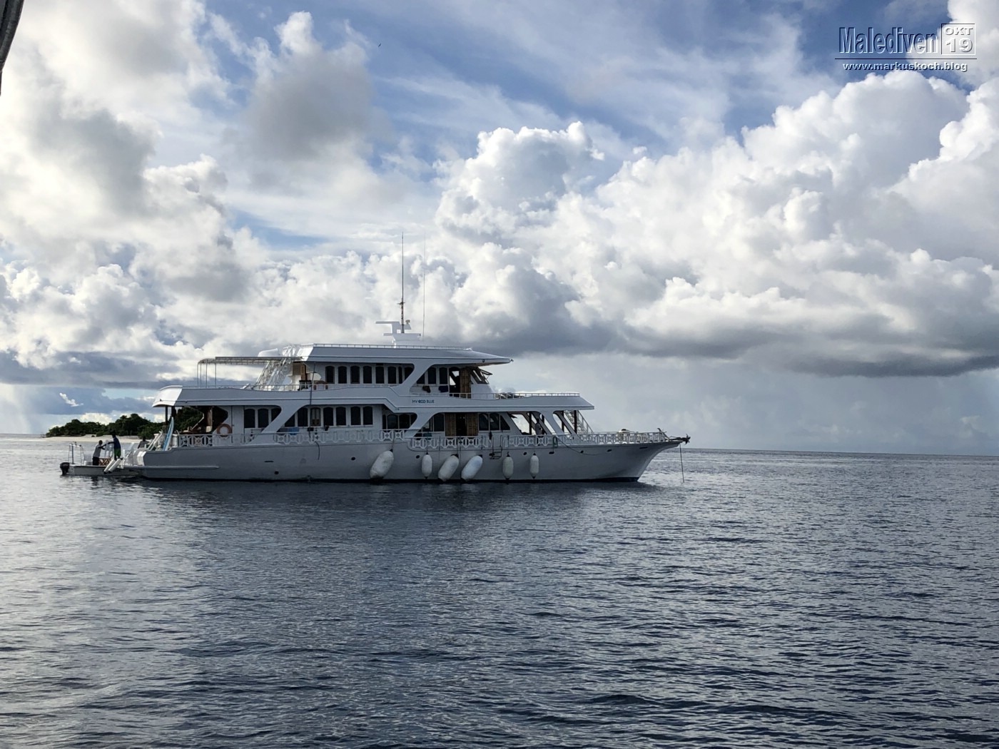 Am Flughafen angekommen wurden wir von einen der Tauchguides Florian empfangen, der uns zu weitern Gästen brachte. Nachdem der erste Schwung vollständig war, schipperten wir mit dem Tauchboot zur Eco Blue.