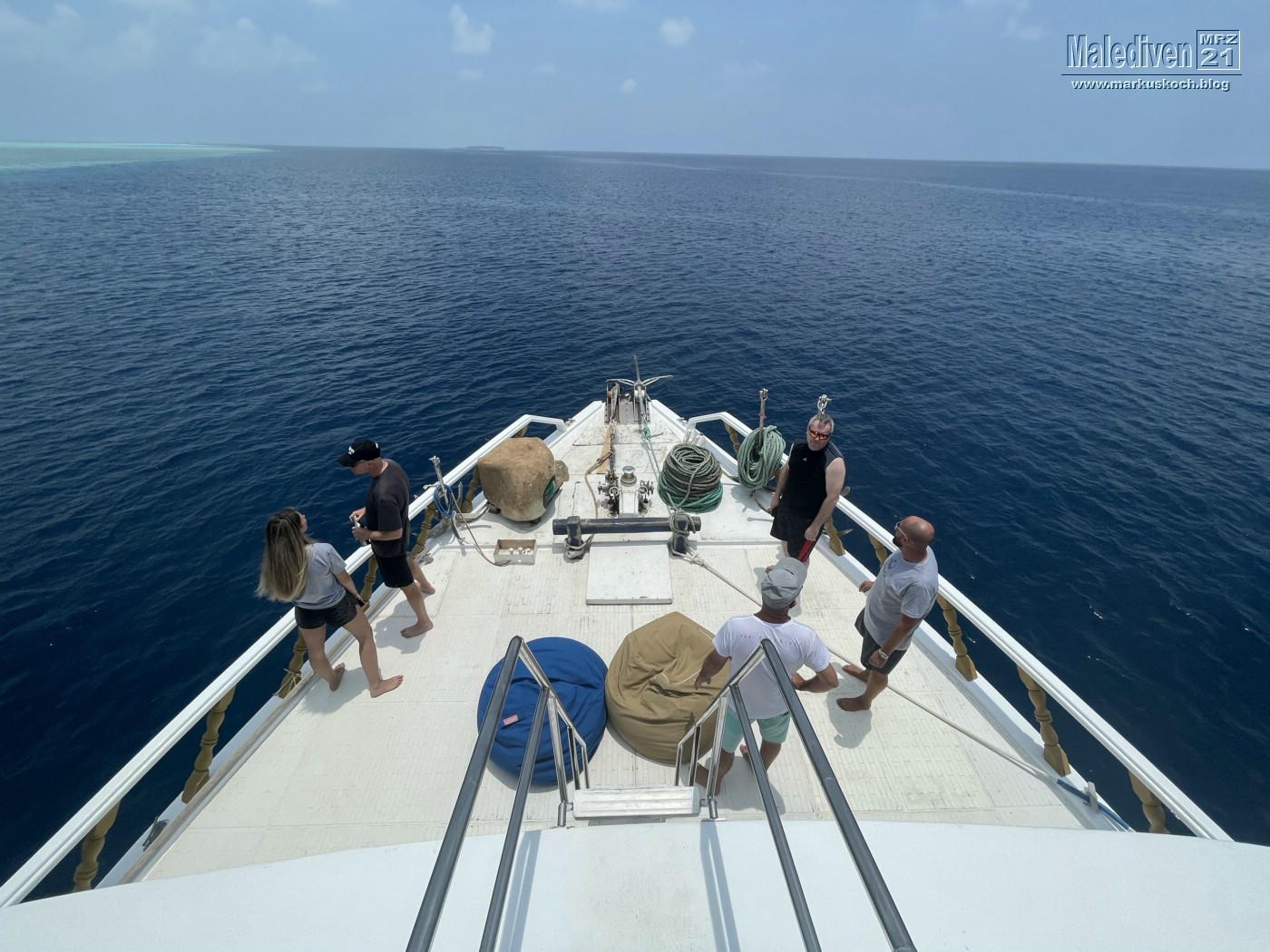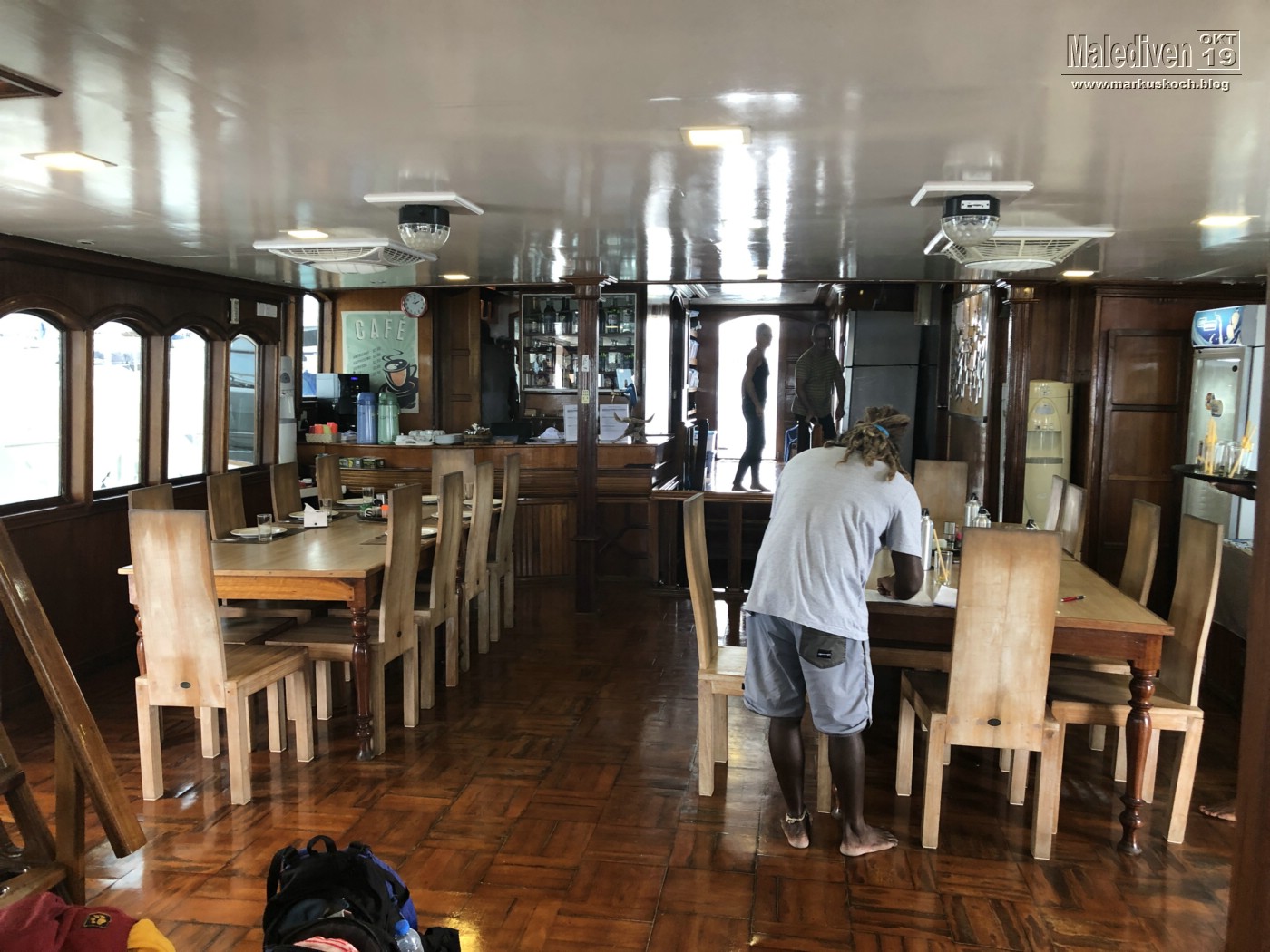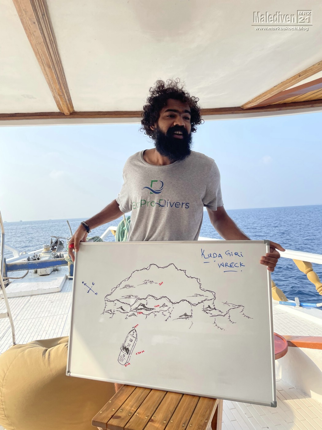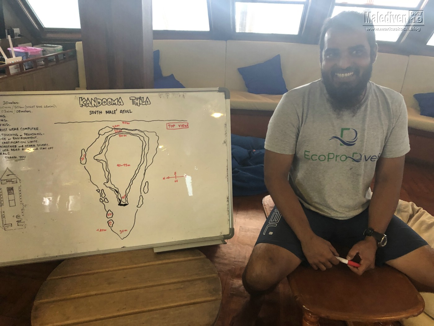 Am Flughafen angekommen wurden wir von einen der Tauchguides Florian empfangen, der uns zu weitern Gästen brachte. Nachdem der erste Schwung vollständig war, schipperten wir mit dem Tauchboot zur Eco Blue.