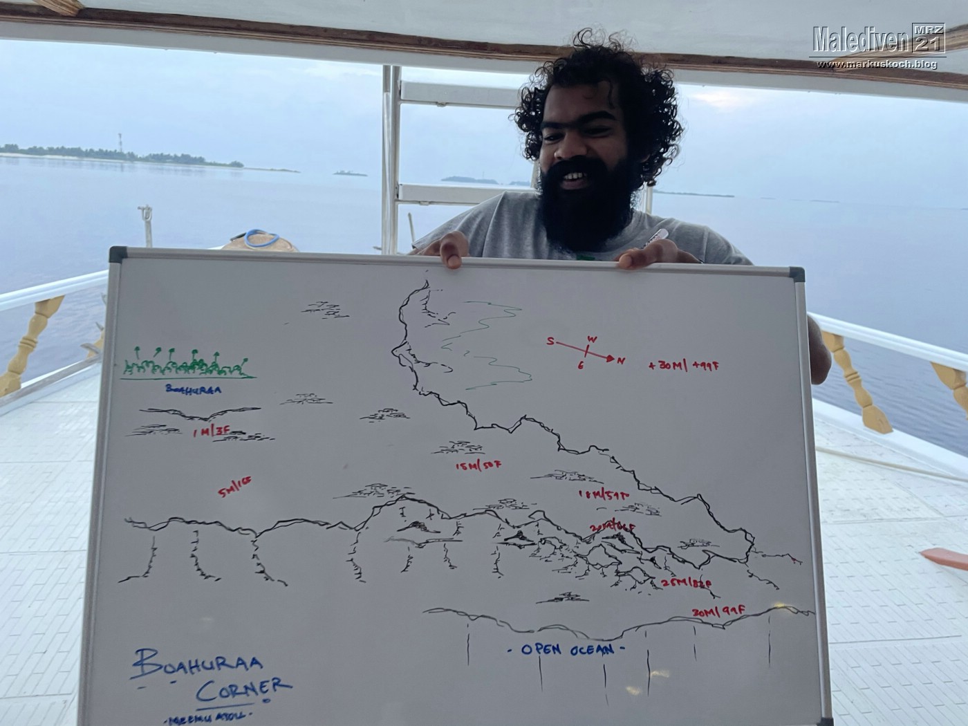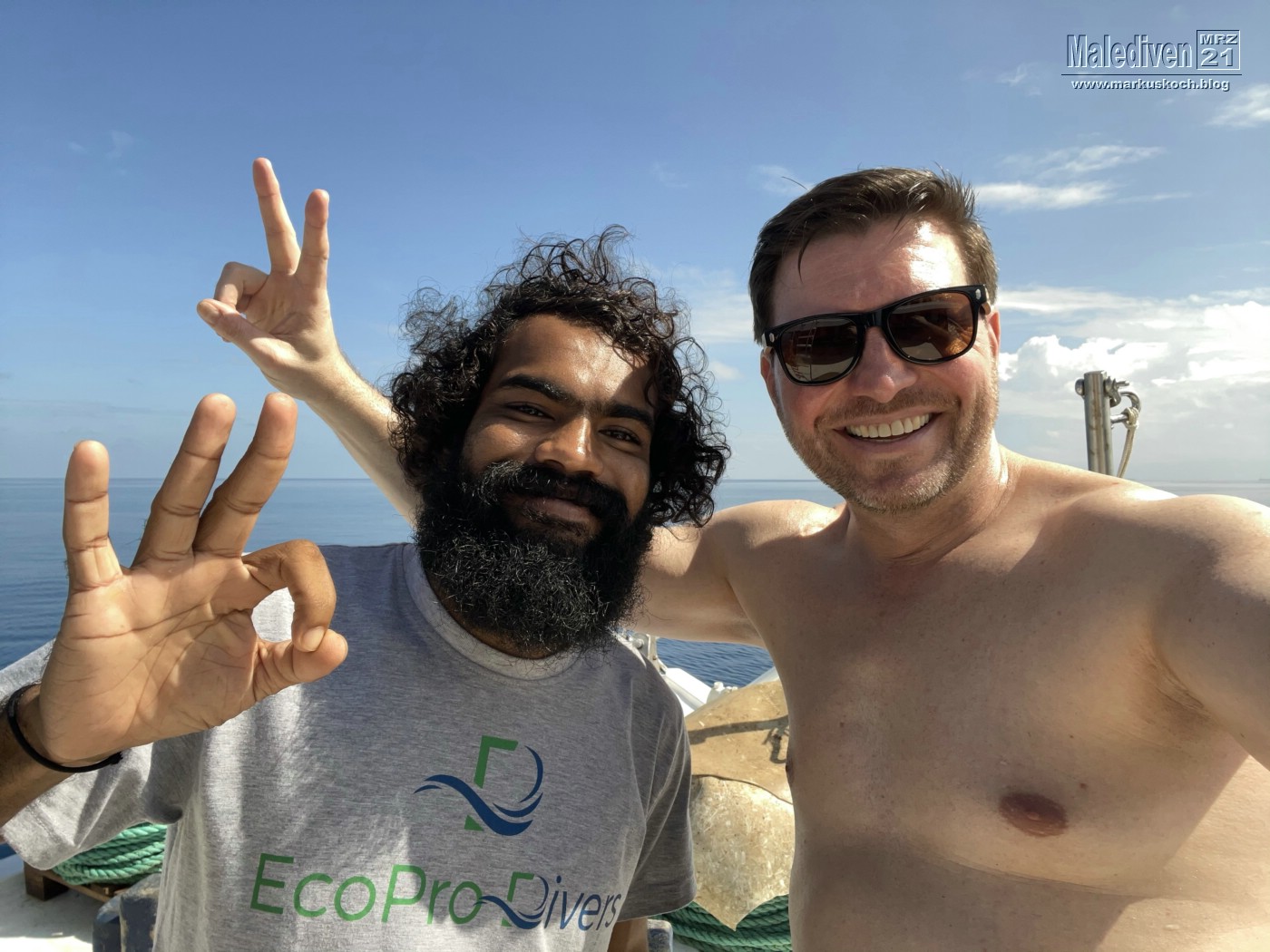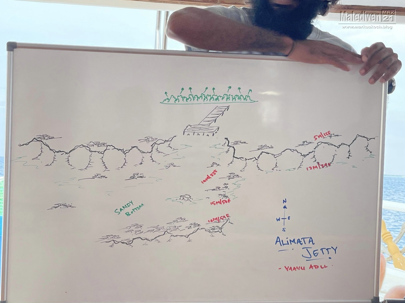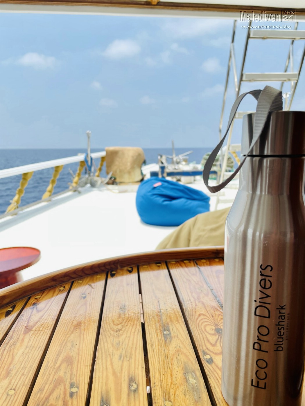 Am Flughafen angekommen wurden wir von einen der Tauchguides Florian empfangen, der uns zu weitern Gästen brachte. Nachdem der erste Schwung vollständig war, schipperten wir mit dem Tauchboot zur Eco Blue.