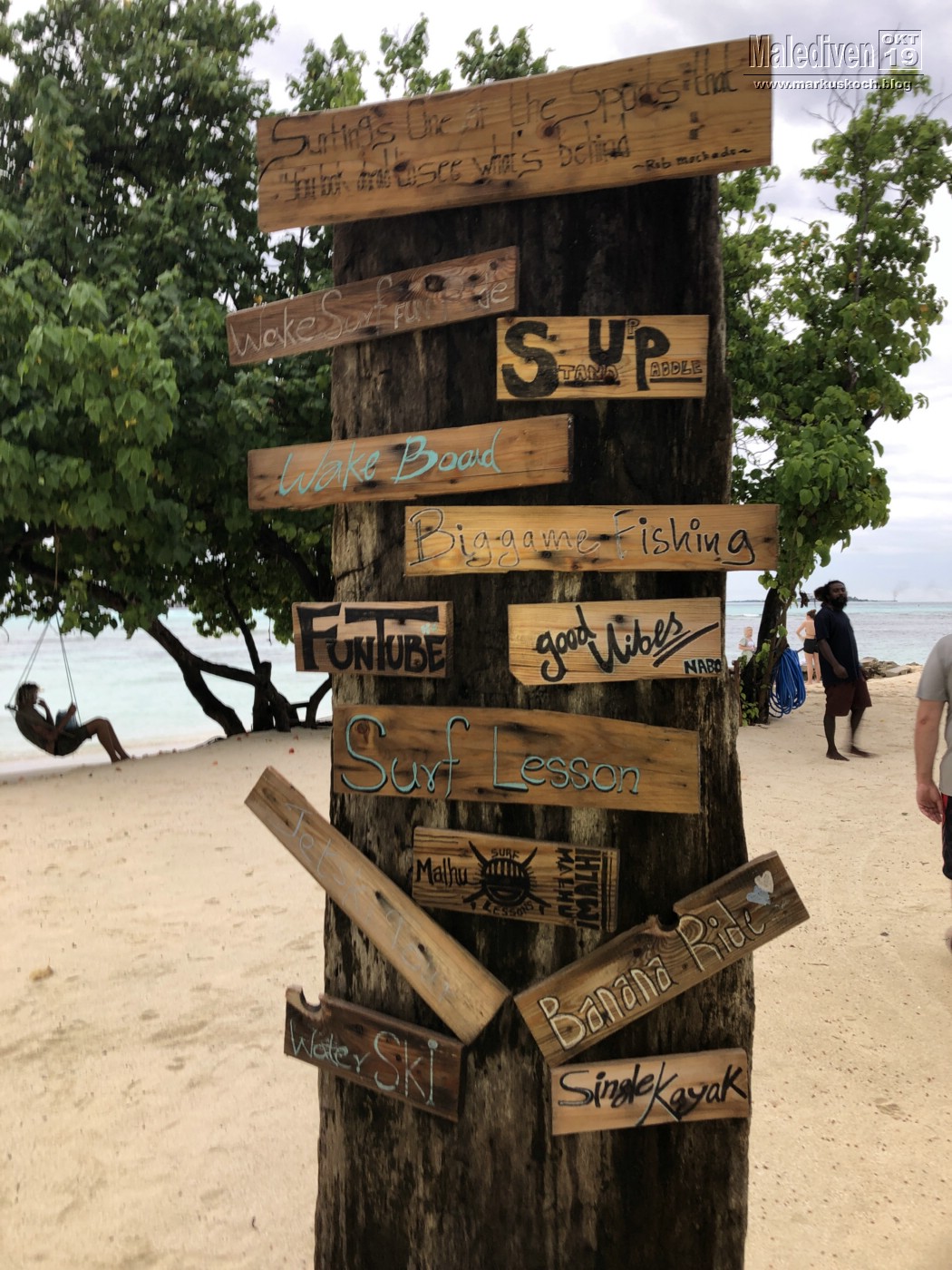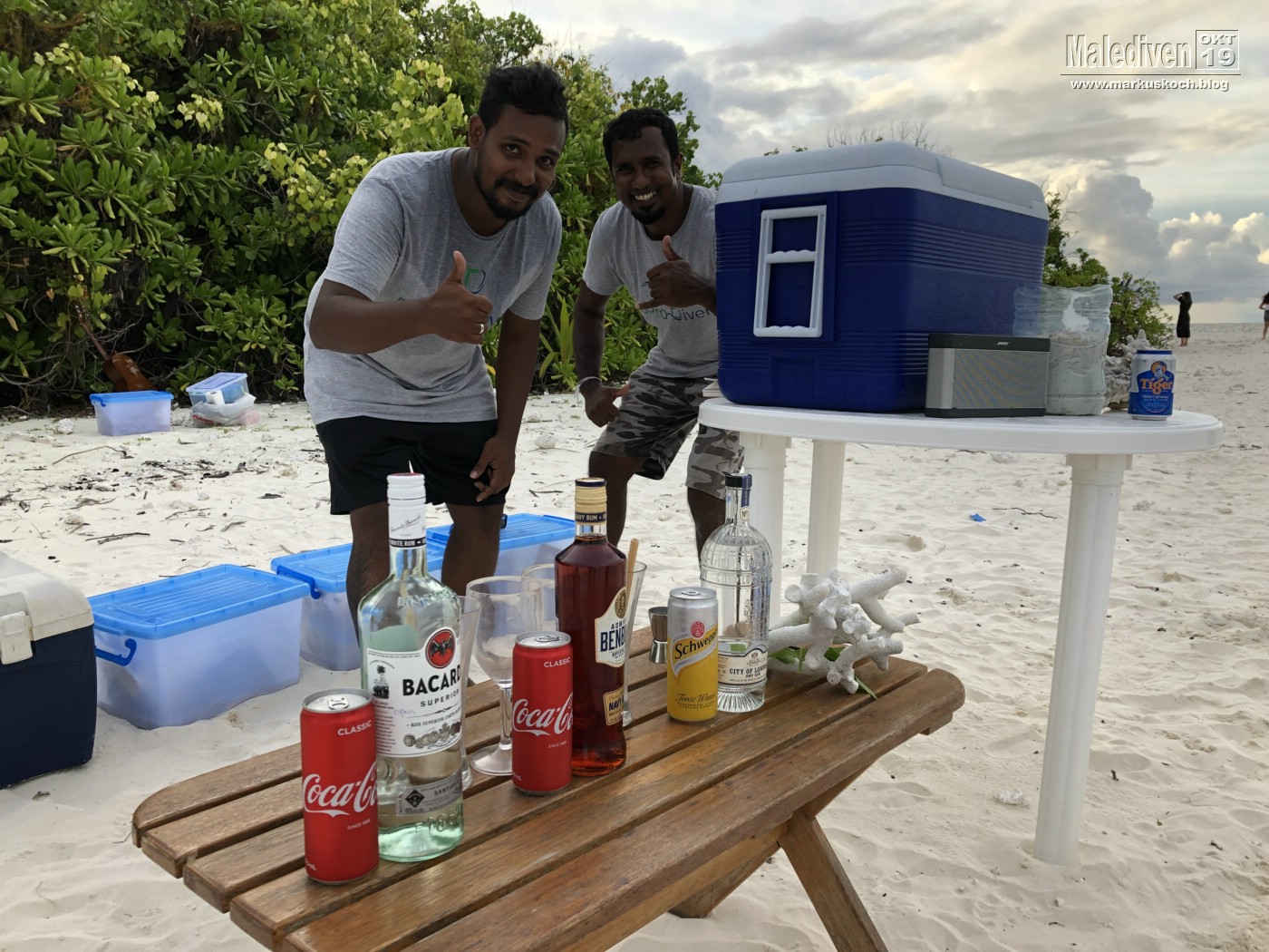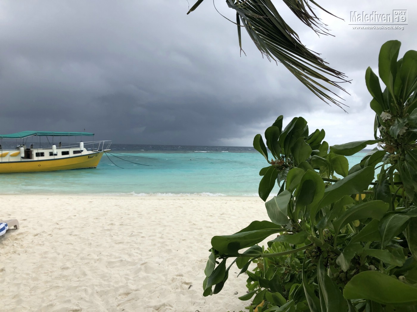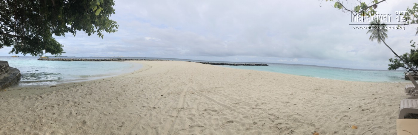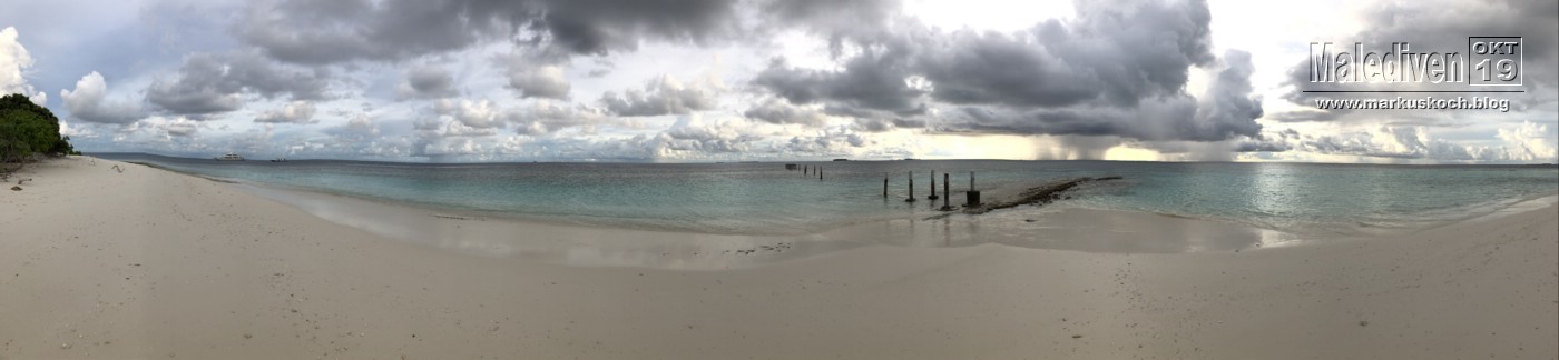 Für Michael & Jackie ging es tagsüber noch für 50 € auf eine 20-minütig entfernte Malediven Insel Embudu per Schnellboot. Leider war das Wetter sehr wechselhaft.