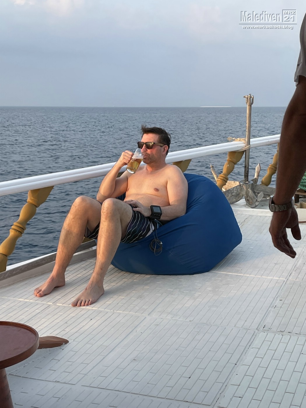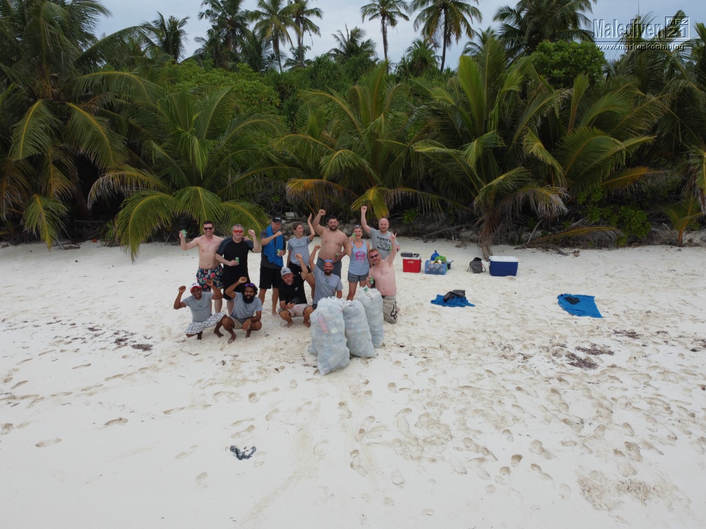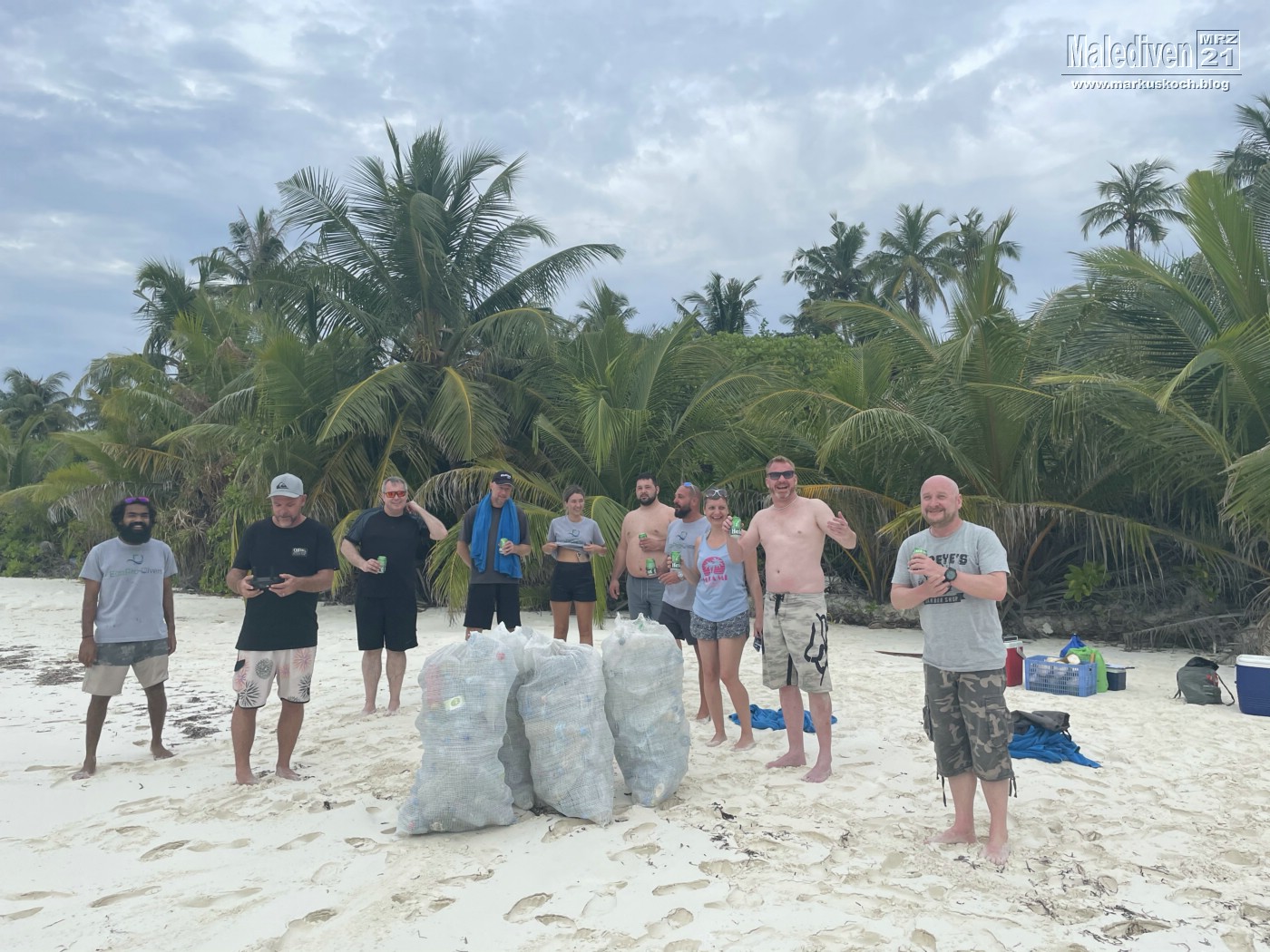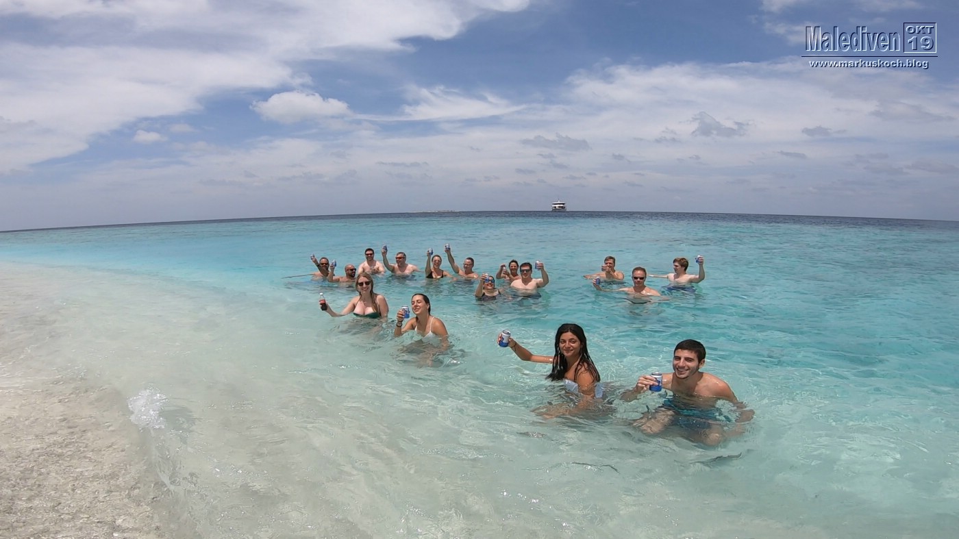 Danach wurde die Ausrüstung durch die Crew gereinigt und wir fuhren an eine kleine Sandinsel, wo wir ein paar Abschlussbiere tranken – inkl. Sonnenbrand 😉