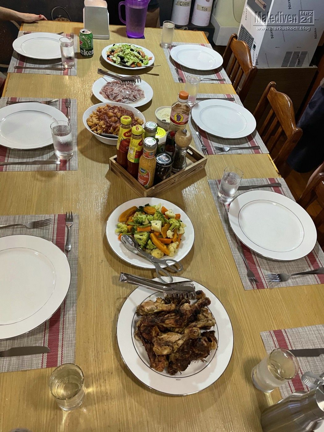 Zurück am späten Nachmittag verabschiedeten wir uns von Jackie und fuhren mit dem Taxi in ein Hotel in Male (Six in one). War echt ok für diese engen Verhältnisse dort. Es leben 200.000 Menschen in Hochhäusern auf nur wenigen Quadratkilometern.