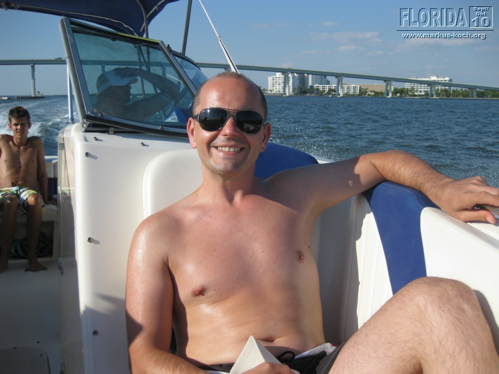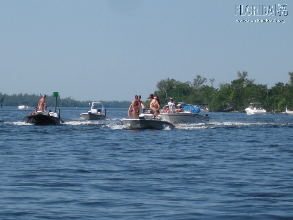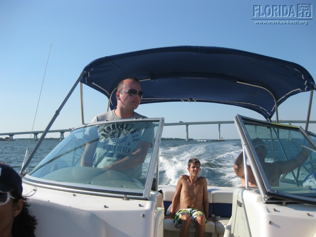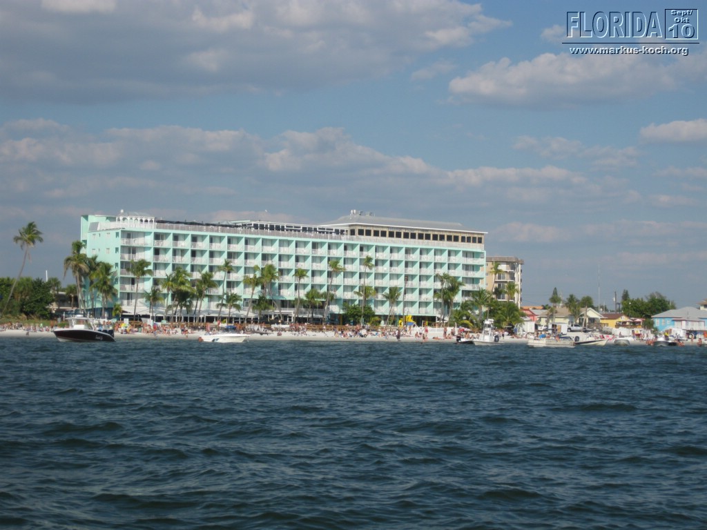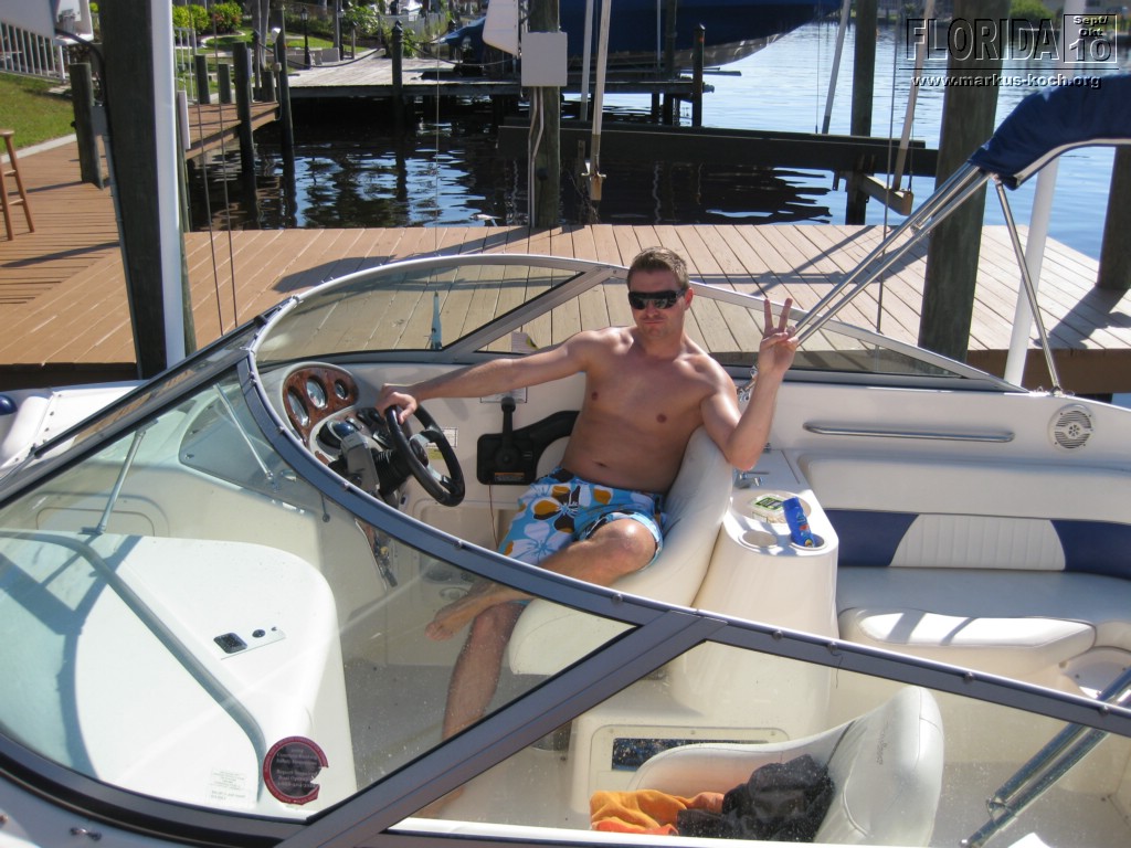 Da der Nachmittag trotzdem noch jung war, überlegten wir uns noch eine kleine Runde mit dem Boot nach Fort Myers Beach zu cruisen. Sevgi & Nico haben das Steuer übernommen. Max, Alex, Irul und ich waren ihnen natürlich behilflich. An Fort Myers Beach angelangt beschallte uns die Musik der Kneipen vom Strand. War nicht schlecht da, aber wir fuhren wieder zurück. Ich sprang nur kurz ins Wasser für eine Abkühlung 🙂