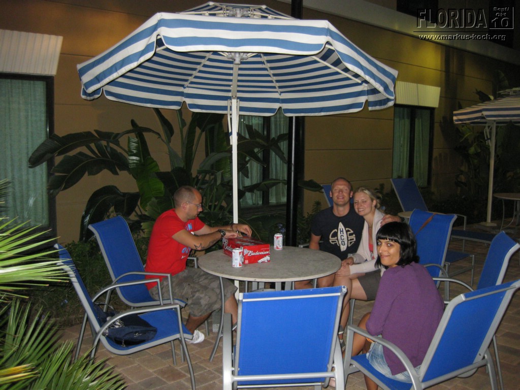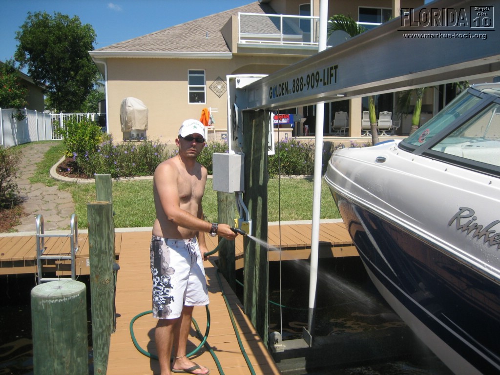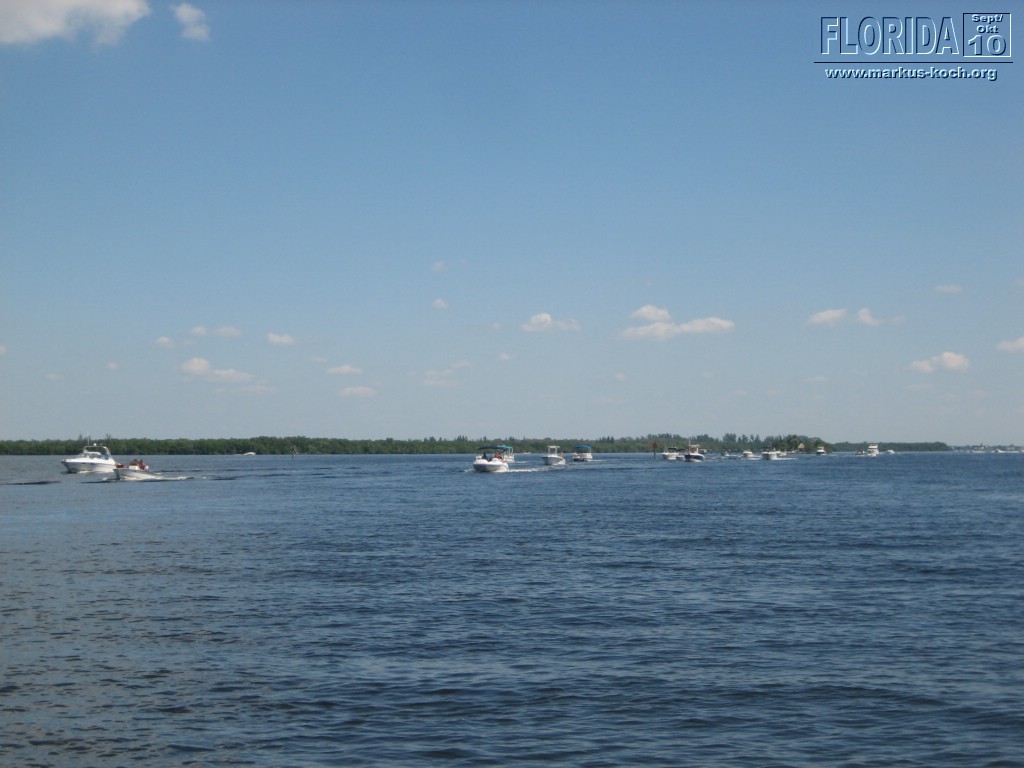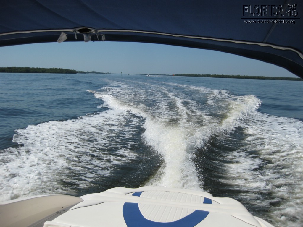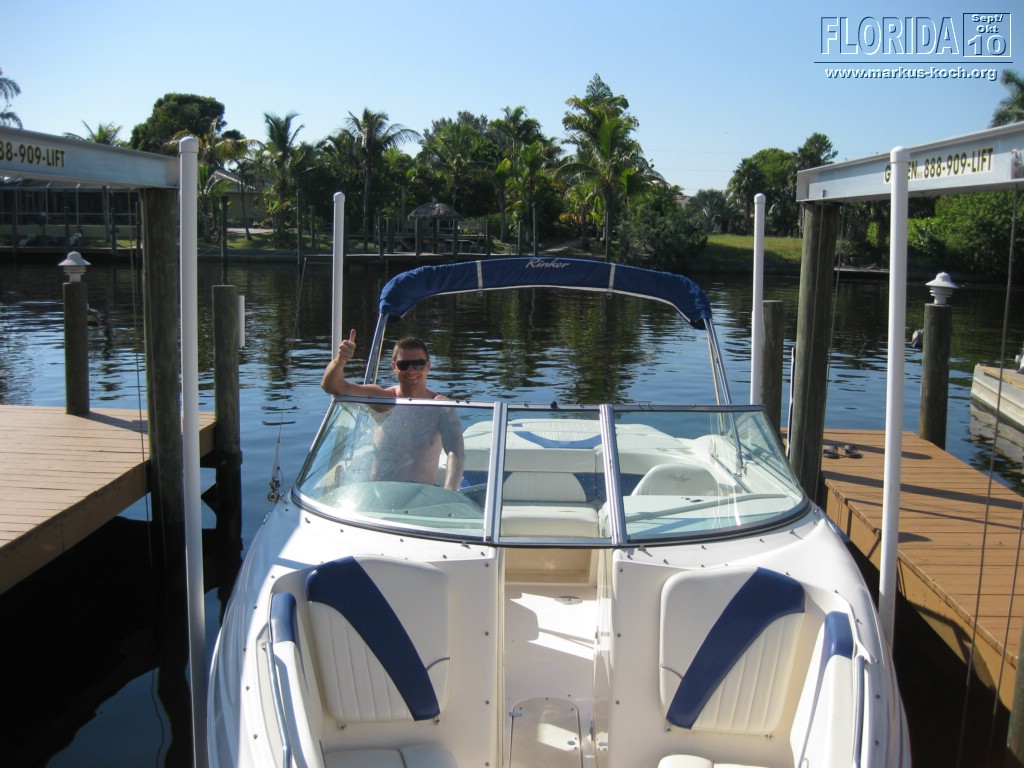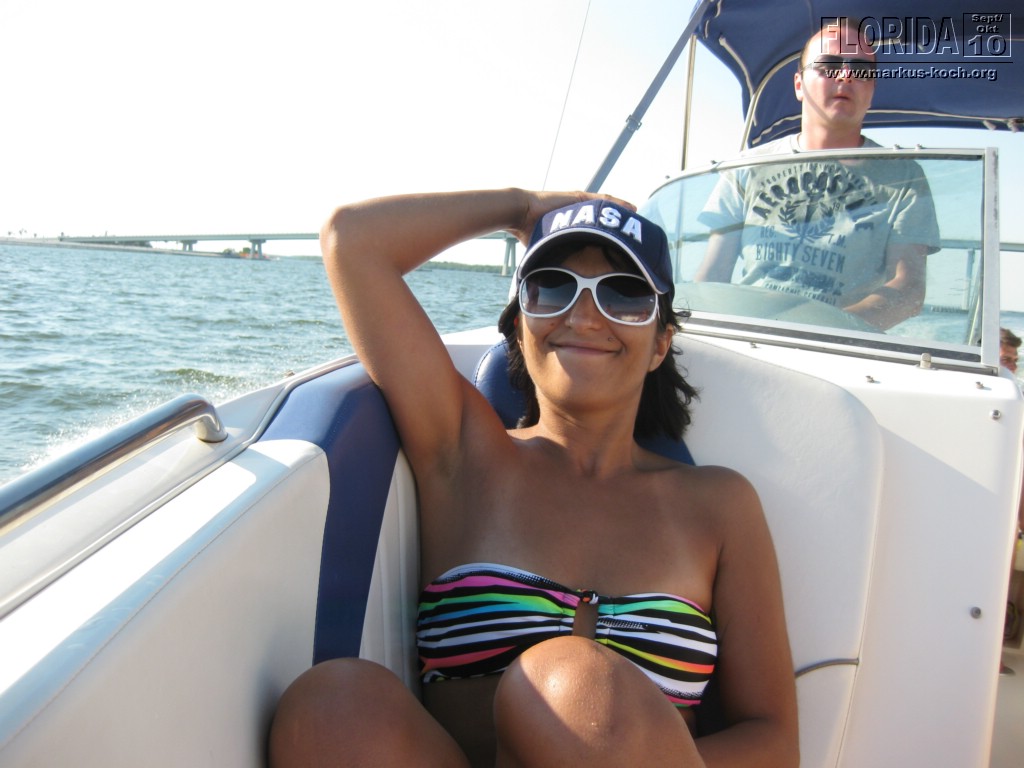 Da der Nachmittag trotzdem noch jung war, überlegten wir uns noch eine kleine Runde mit dem Boot nach Fort Myers Beach zu cruisen. Sevgi & Nico haben das Steuer übernommen. Max, Alex, Irul und ich waren ihnen natürlich behilflich. An Fort Myers Beach angelangt beschallte uns die Musik der Kneipen vom Strand. War nicht schlecht da, aber wir fuhren wieder zurück. Ich sprang nur kurz ins Wasser für eine Abkühlung 🙂