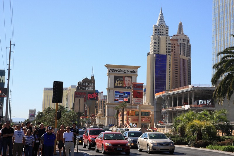 Las Vegas am Tag – aber nicht überall. In den Casinos ist es so dunkel bzw. hell, wie auch in der Nacht.