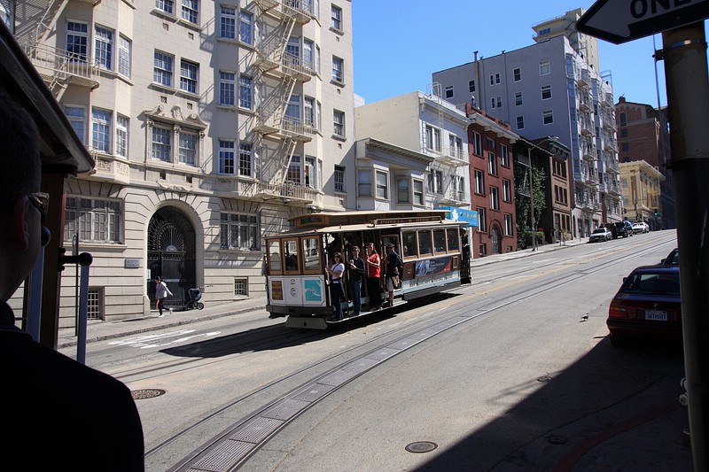 Danach hieß es für uns eine Fahrt mit der berühmten Cable Car auf der Powell-Hyde Line quer durch die Stadt zur Market Street. Da es bereits mittags war, haben wir dort in der Nähe etwas gegessen. Anschließend waren wir kurz in einem Abercrombie & Fitch Store, aber haben hier nichts eingekauft. Mit der Cable Car wollten wir auch zurück zum Ausgangspunkt wo unser Auto stand, aber leider hatte das Cable einen Schaden und die Reperaturarbeiten dauerten ewig. Wir entschlossen uns dann mit dem Taxi zurück zu fahren. Ich sage euch, was ne rasante Fahrt. Manchmal dachten wir nicht, dass wir noch zum Ziel kommen LOL 🙂