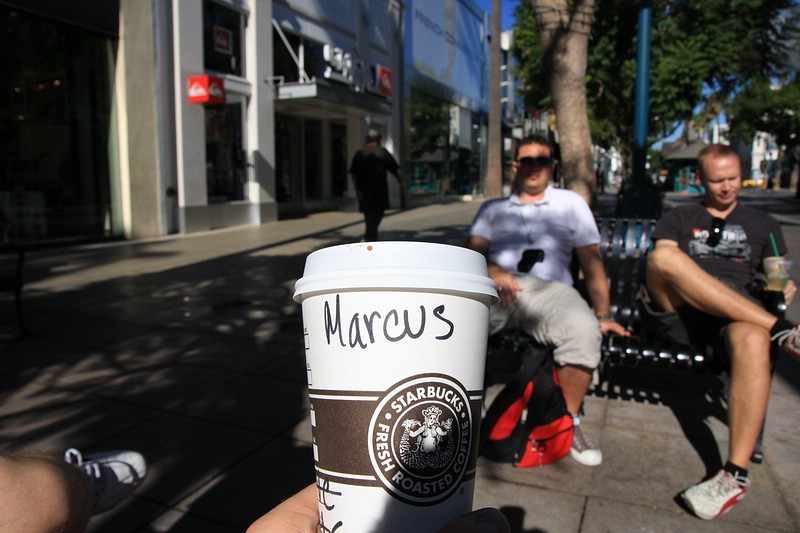 Tag 1 in Los Angeles. Was haben wir heute gemacht? Mal überlegen… es ging los, dass wir am Morgen nochmal bei Helligkeit zum Santa Monica Pier gelaufen sind und von da weiter zum Venice Beach. Unser Auto konnten wir noch bis 11 Uhr am Motel lassen. Zurück sind wir noch in eine der schönsten Fußgängerzone und auch Sightseeinghighlights, nämlich der „Third Dtreet Promenade“ gegangen und haben bei einem Starbucks -wie soll es anders sein – gefrühstückt.