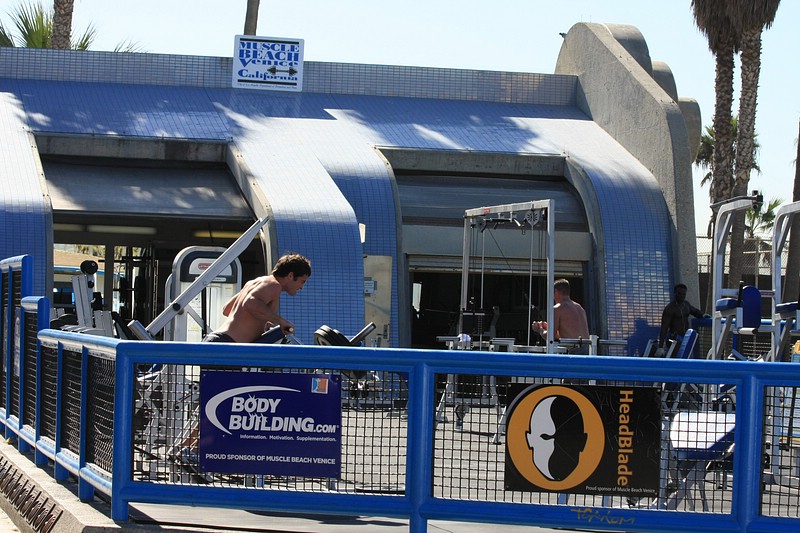 Mit dem Auto fuhren wir noch an diesen wahnsinnig breiten, sauberen, feinsandigen Venice Beach bei gefühlten 35°C Sonne pur – waren es sicher auch – entlang bis zum Ende, wo u.a. der Muscle Beach ist. Dort stählten so manche Muskelmaschinen ihre Mukkis. Wir natürlich auch LOL *G*
