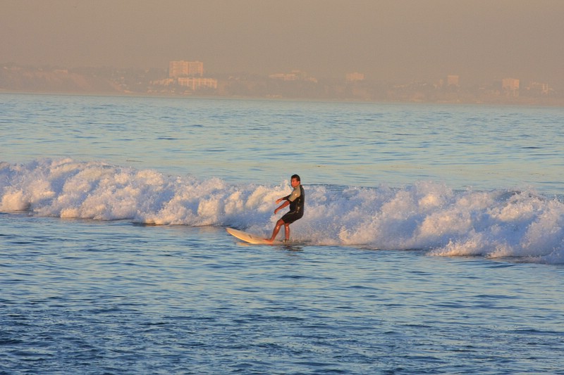 Weiter den Sunset Blvd waren wir dann an der Küste, wo es dann spontan nach Malibu zum Malibu Beach ging. Dort konnten wir noch einigen Wellenreitern bei der sinkenden Abendsonne zusehen. Zum Abendessen besuchten wir einen „Jack in the Box“ Burgerladen.