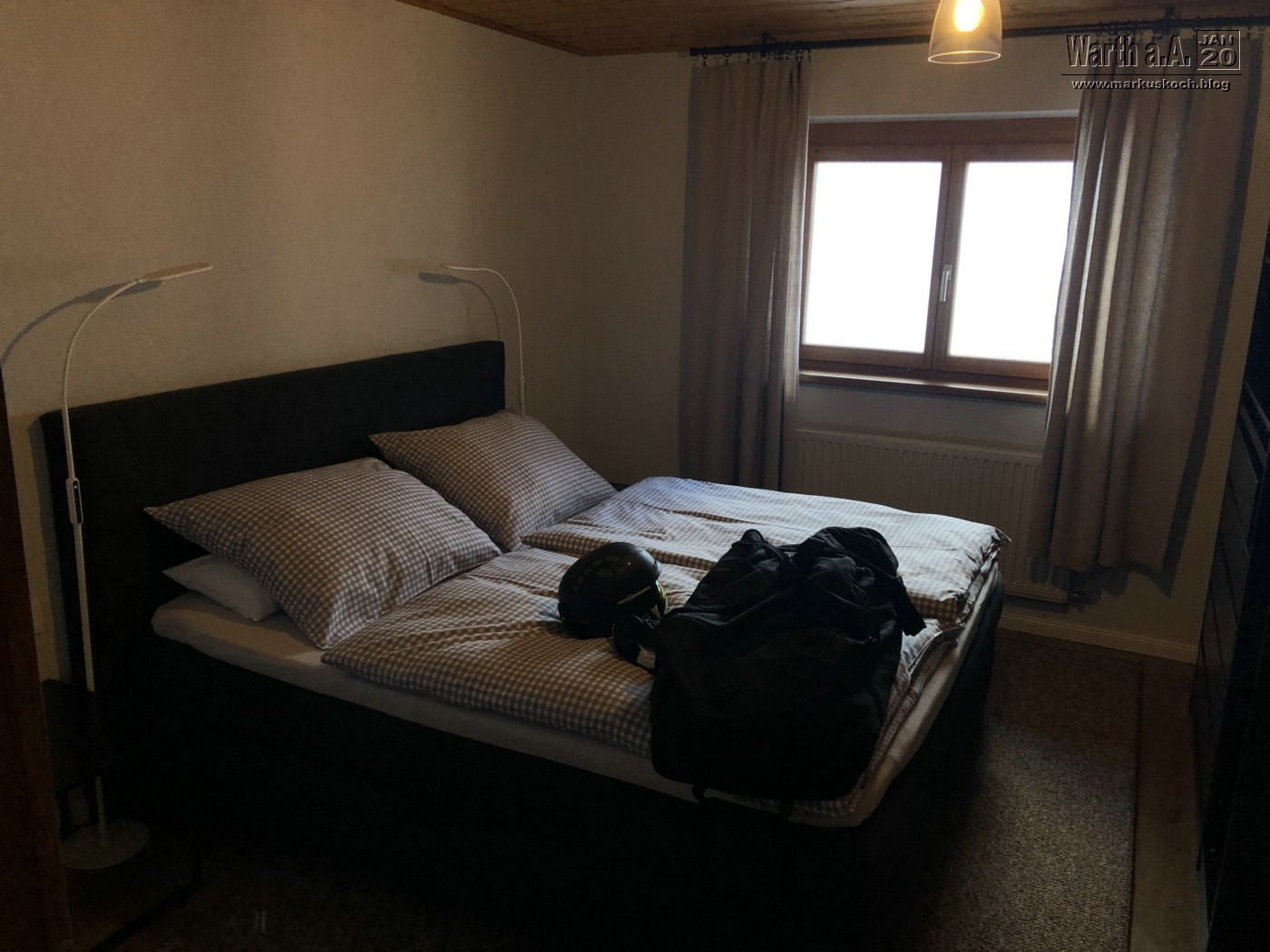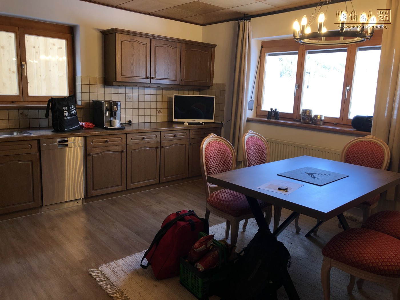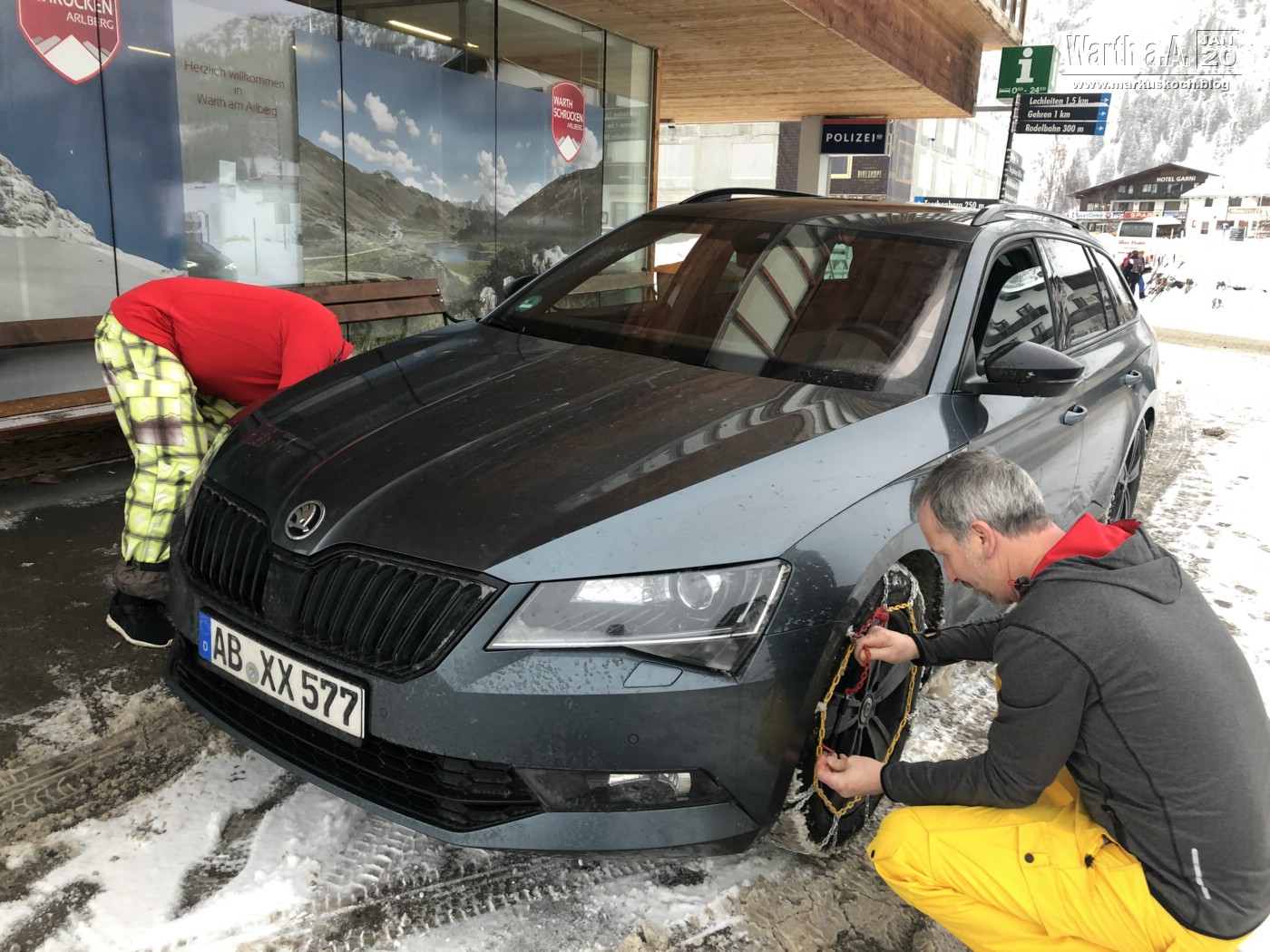 Nach schneller Anreise mussten wir aufgrund des Schneefalls die letzten Meter den Berg zur Unterkunft „abendrot“ in Warth am Arlberg hoch Schneeketten aufziehen.