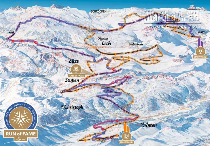 Beginn in Warth mit Ziel am Rendl in St. Anton. Gesagt getan schafften wir die Tour recht gut. Einen Zwischenstopp legten wir u.a. im Mooserwirt ein. Eine Piste auf dem Rückweg war aber leider sehr steinig, da der Wind den Schnee meist abträgt.